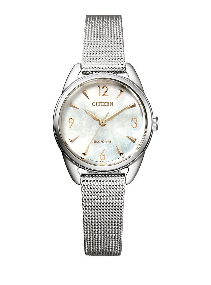 Orologio donna citizen, Em0681-85y, collezione lady, movimento eco-drive, solo tempo, cassa in acciaio 27mm, quadrante bianco, cinturino maglia milano