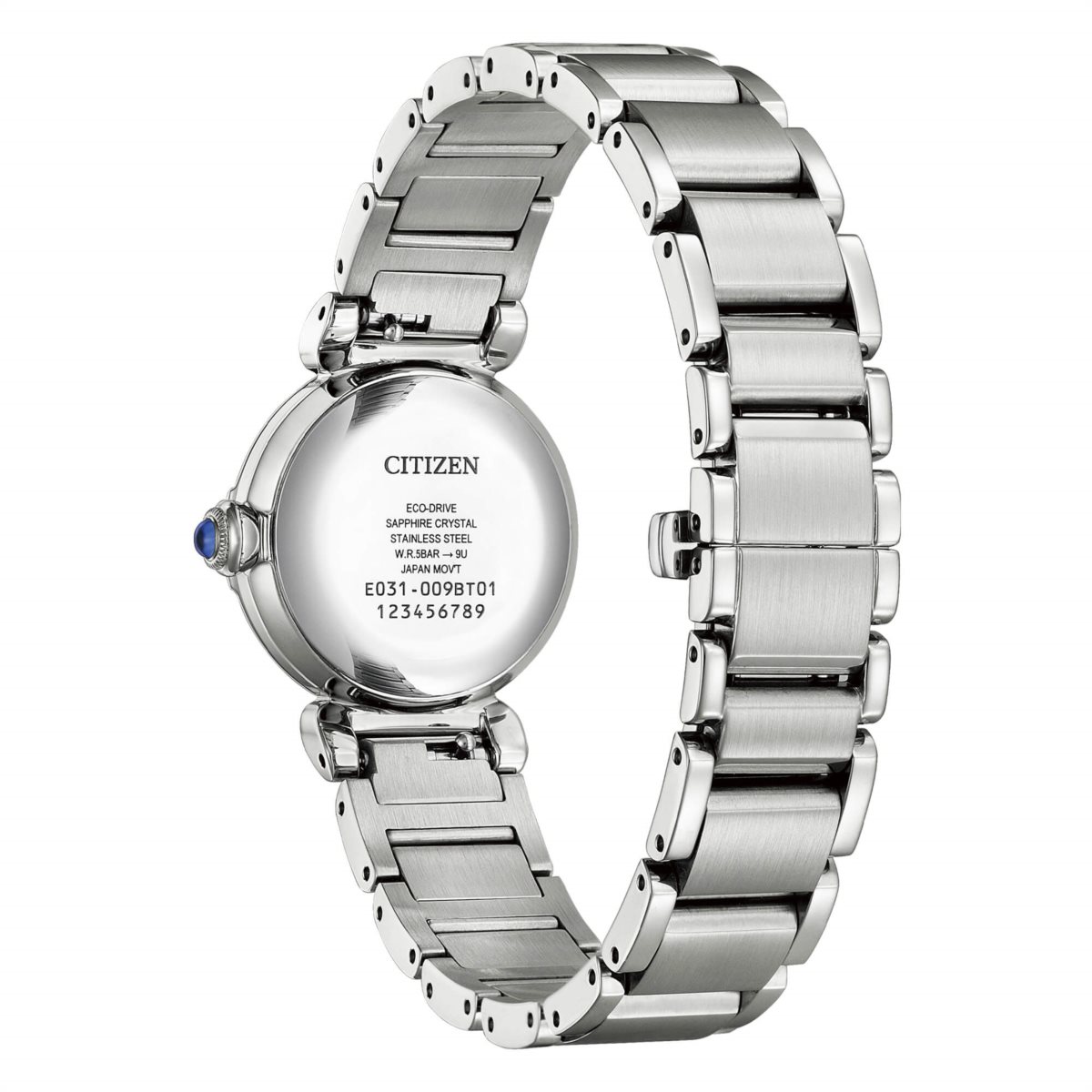 Orologio donna citizen, EM1130-83D, collezione lady, funzione solo tempo con movimento eco drive, cassa in acciaio 26mm con quadrante madreperla e vetro zaffiro. cinturino in acciaio, resistenza all'acqua 5 atm.