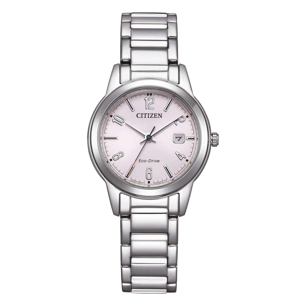 Orologio donna citizen, FE1241-71Z, collezione lady, movimento eco-drive, solo tempo, cassa in acciaio 29mm, quadrante rosa con datario, bracciale in acciaio, resistenza all'acqua 3atm