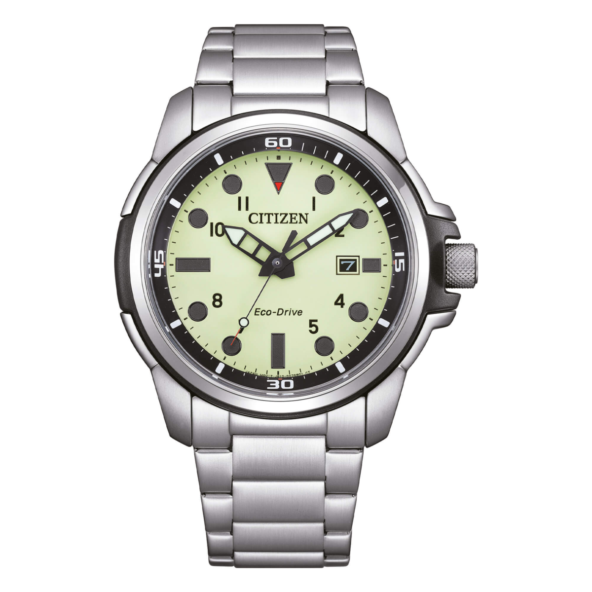Orologio uomo citizen, AW1800-89X, collezione marine, movimento eco-drive, solo tempo, cassa in acciaio 44mm, quadrante verde con datario, bracciale in acciaio, resistenza all'acqua 10atm
