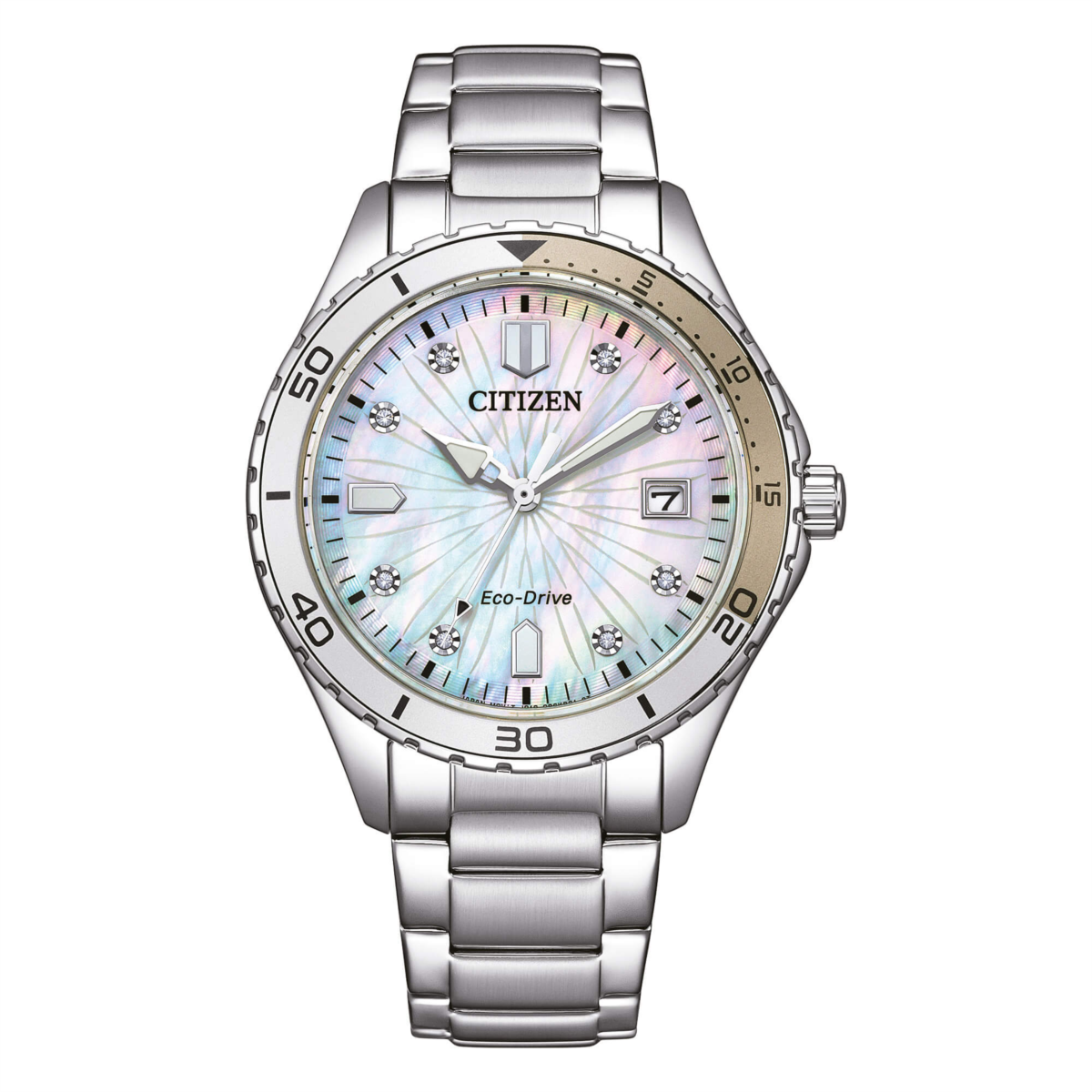 Orologio donna citizen, FE6170-88D, collezione marine, movimento eco-drive, solo tempo, cassa in acciaio 36mm, quadrante con datario, bracciale in acciaio, resistenza all'acqua 10atm