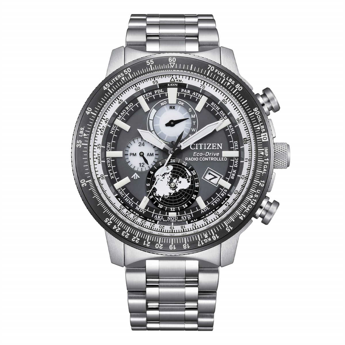 Orologio uomo citizen, BY3006-53H, collezione promaster eco drive, movimento eco drive, radiocontrollato, cassa in acciaio 46mm, quadrante con datario, bracciale in acciaio, resistenza all'acqua 20 bar