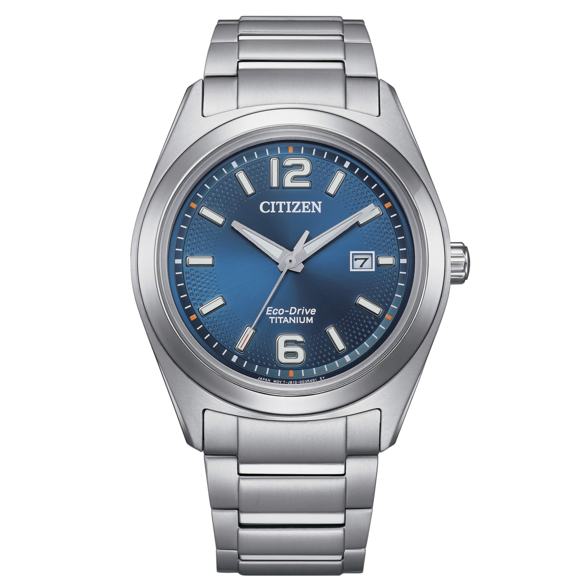 Orologio uomo citizen, AW1641-81L, collezione super titanium, movimento eco-drive, solo tempo, cassa in super titanio 42mm, quadrante blu con datario, bracciale in super titanio, resistenza all'acqua 10atm