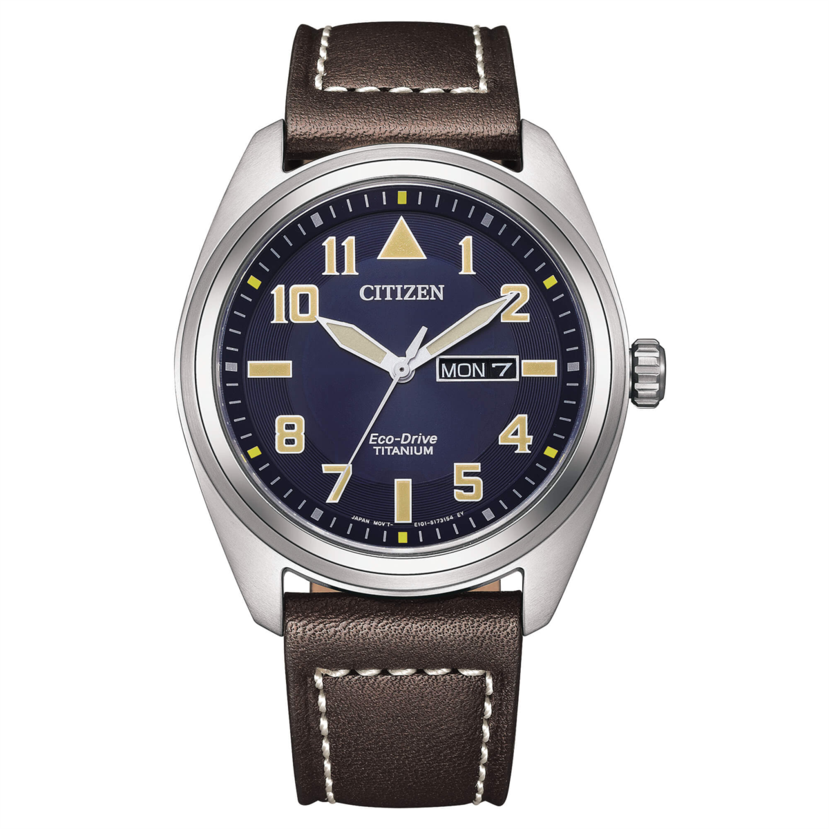 Orologio uomo citizen, BM8560-37L, collezione super titanium, movimento eco-drive, solo tempo, cassa in super titanio 42mm, quadrante blu con datario, fondello serrato a vite, vetro zaffiro, cinturino in pelle, resistenza all'acqua 10atm