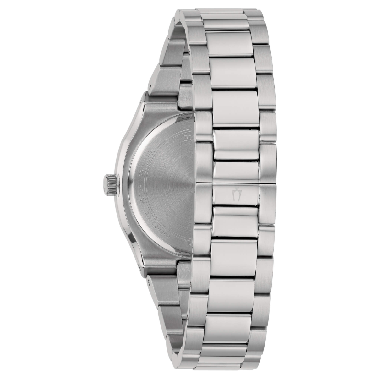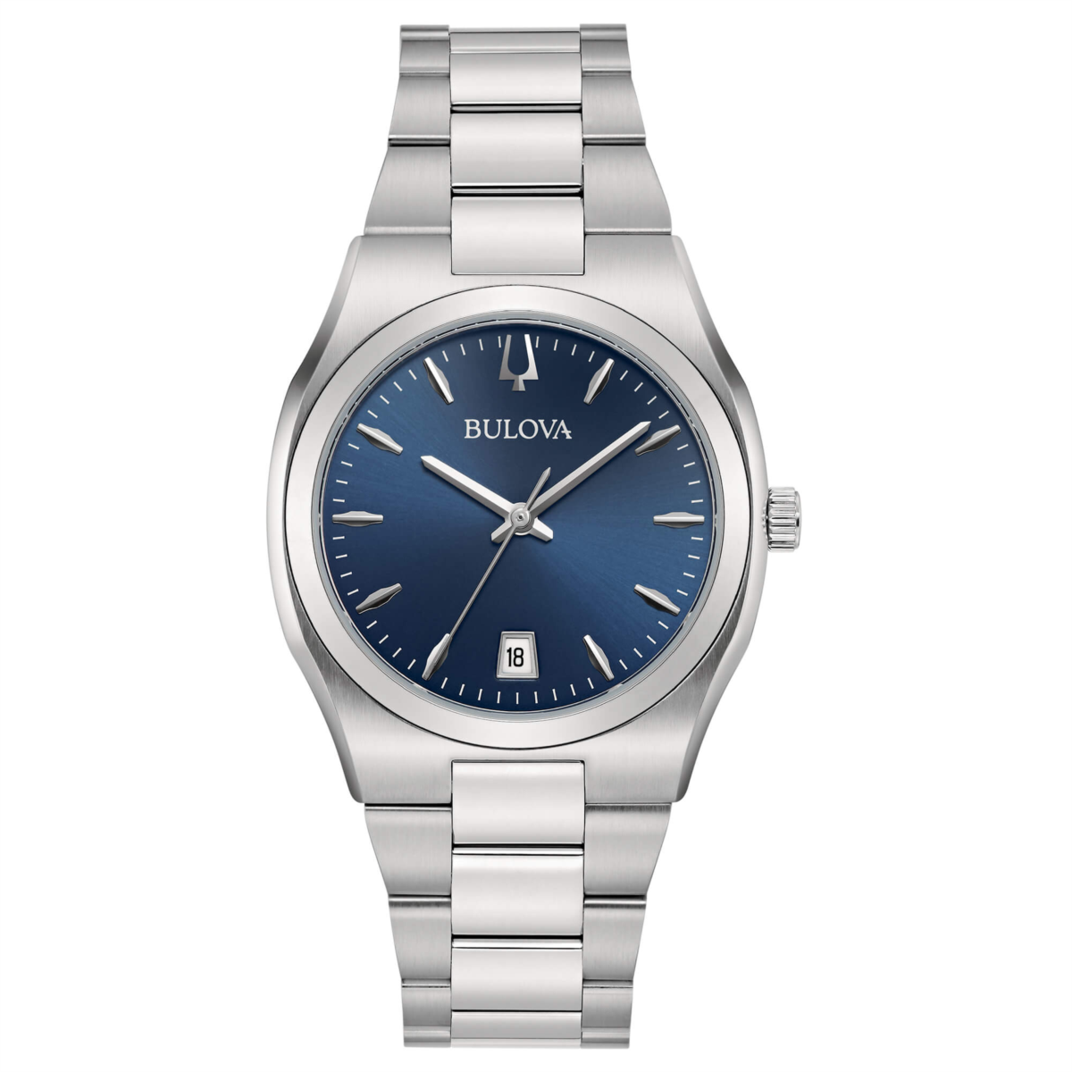 Orologio donna bulova, 96M157, collezione survejor, movimento al qurzo, solo tempo, cassa in acciaio 34mm, quadrante blu con datario, bracciale in metallo, resistenza all'acqua 3atm