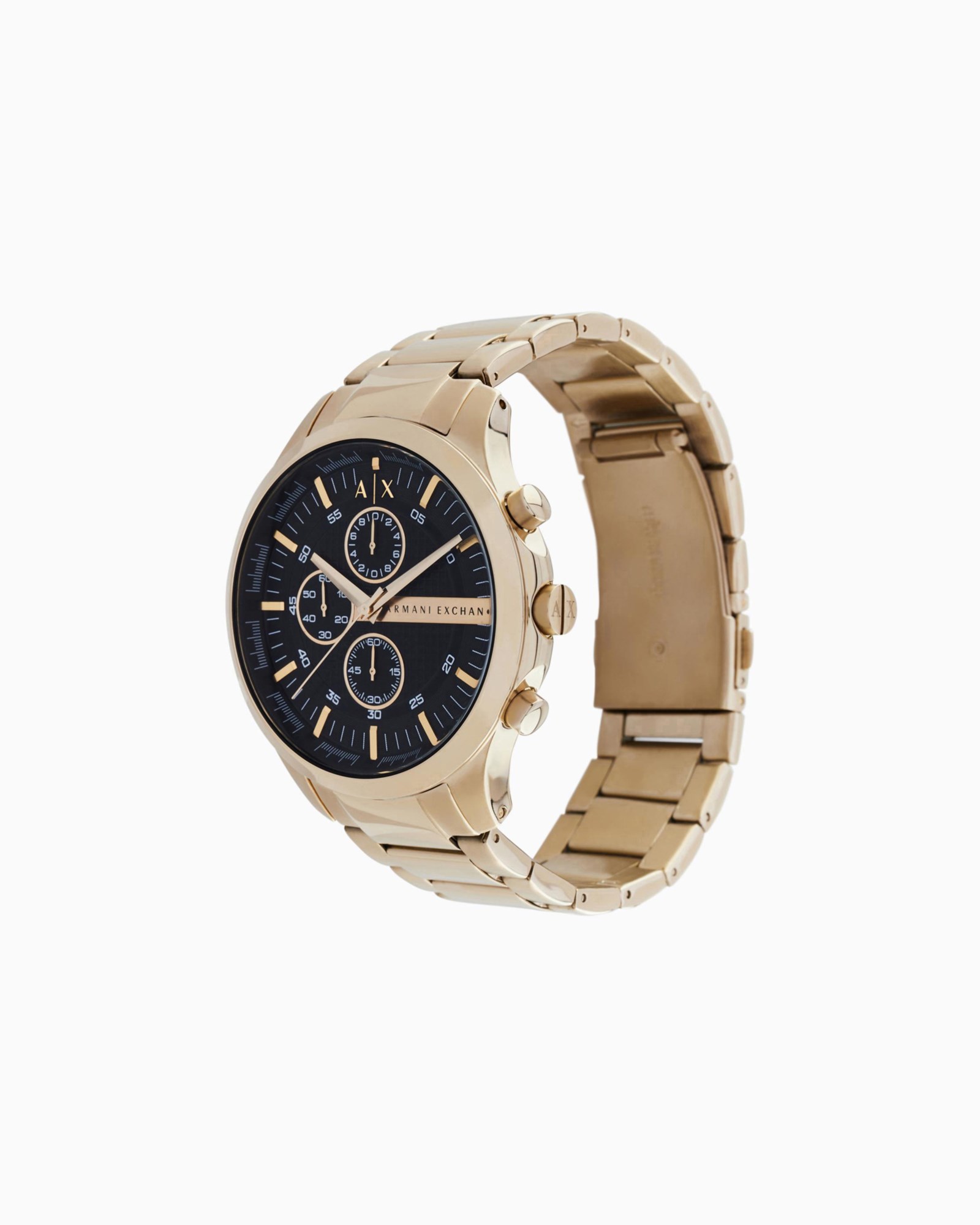Orologio uomo armani, AX2137, collezione hampton, movimento al quarzo, cronografo, cassa in acciaio dorato 46mm, quadrante nero con datario, bracciale in acciaio dorato, resistenza all'acqua 5atm