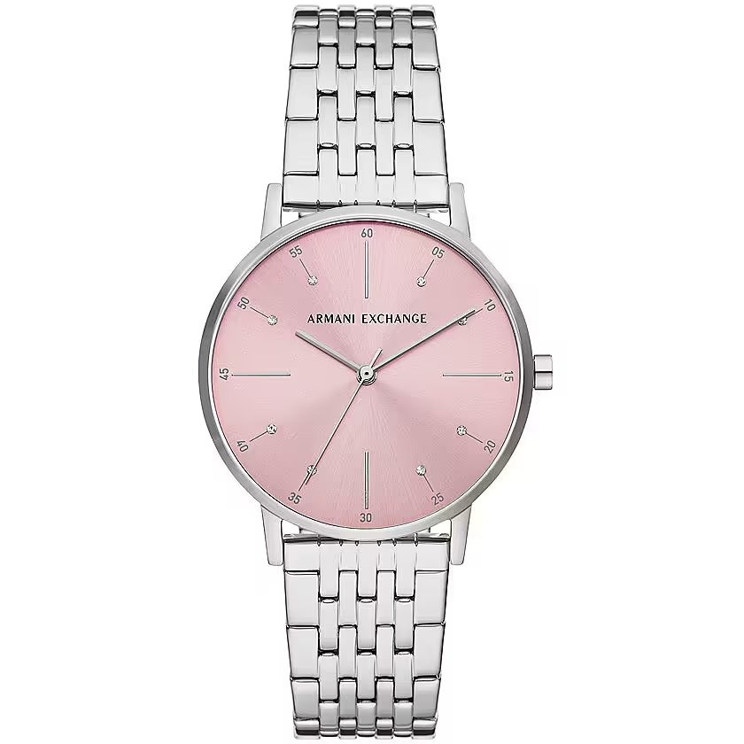 Orologio donna armani exchange, AX5591, collezione lola, movimento al quarzo, solo tempo, cassa in acciaio 36mm, quadrante rosa, bracciale in acciaio, resistenza all'acqua 3atm