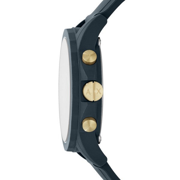 Orologio uomo armani exchange, AX1335, collezione Outerbanks, movimento al quarzo, cronografo, cassa in silicone blu 54Mm, quadrante blu con datario, cinturino in silicone blu, resistenza all'acqua 3 atm