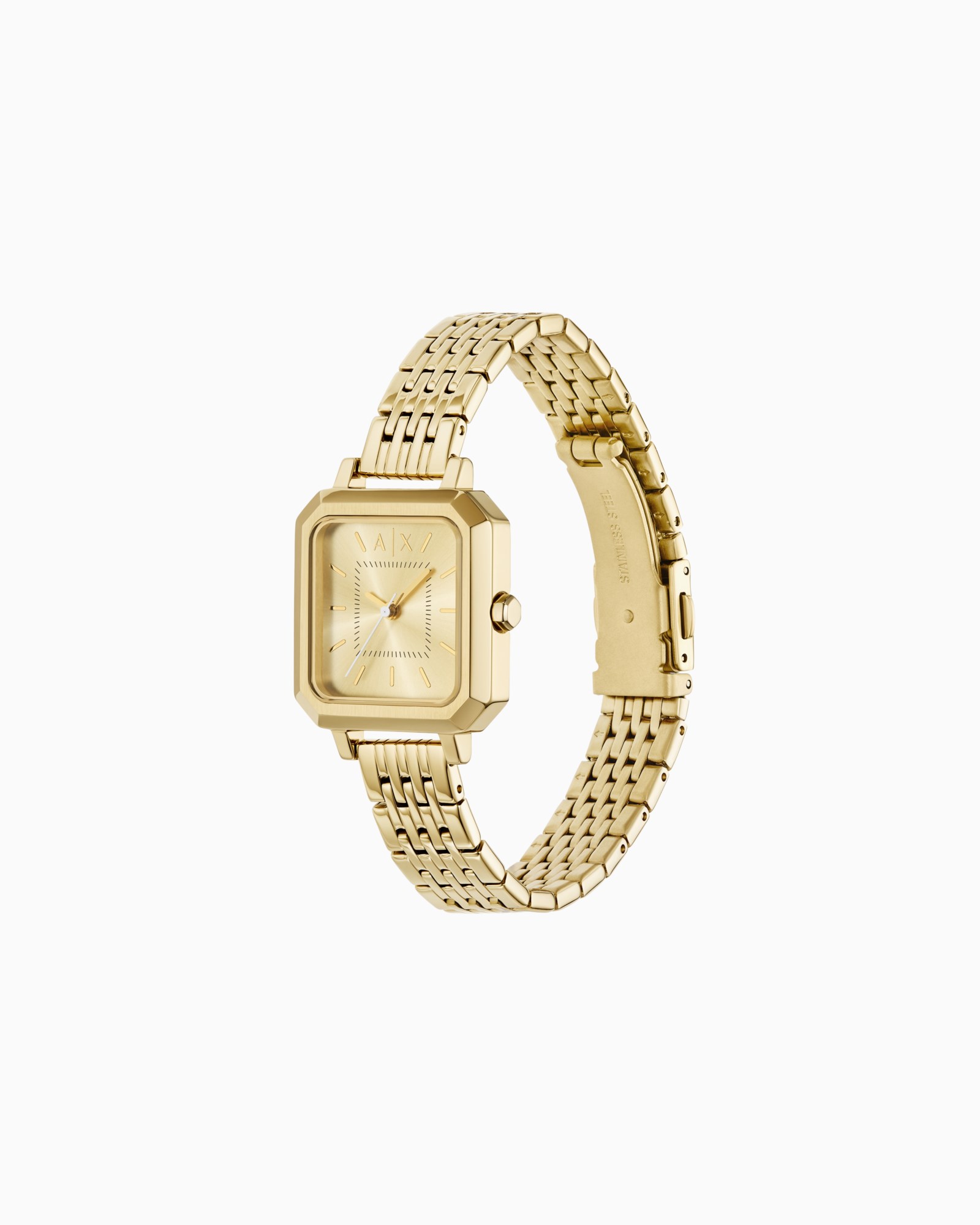 Orologio donna armani, movimento al quarzo, solo tempo, cassa in acciaio dorato 27mm, quadrante oro, bracciale in acciaio dorato, resistenza all'acqua 5atm