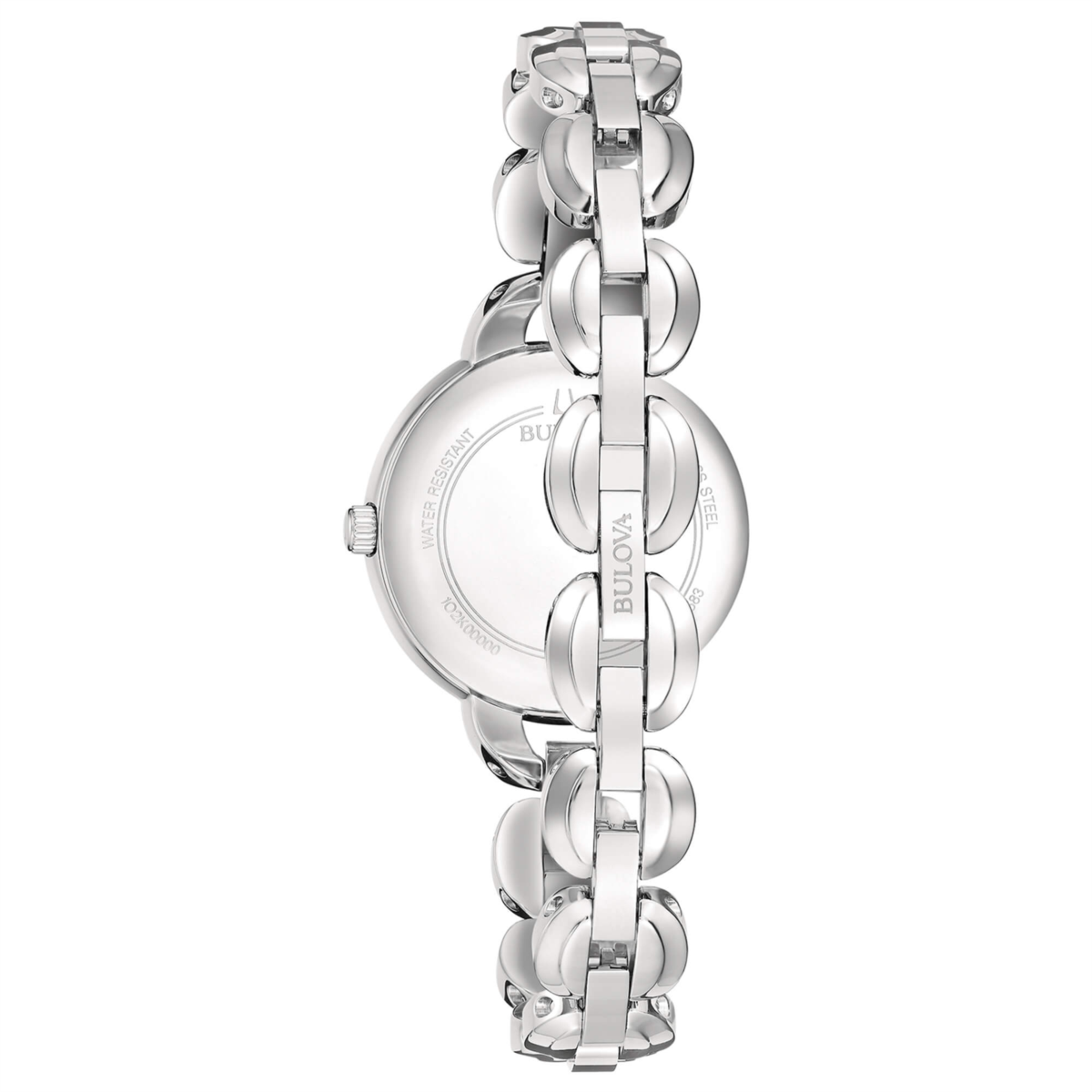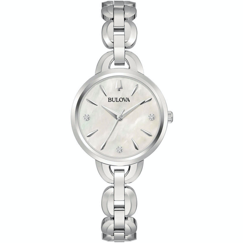 Orologio donna bulova, 96P230, collezione diamonds, movimento al quarzo, solo tempo, cassa in acciaio 28mm, quadrante madreperla con indici in diamanti, bracciale in acciaio, resistenza all'acqua 3atm