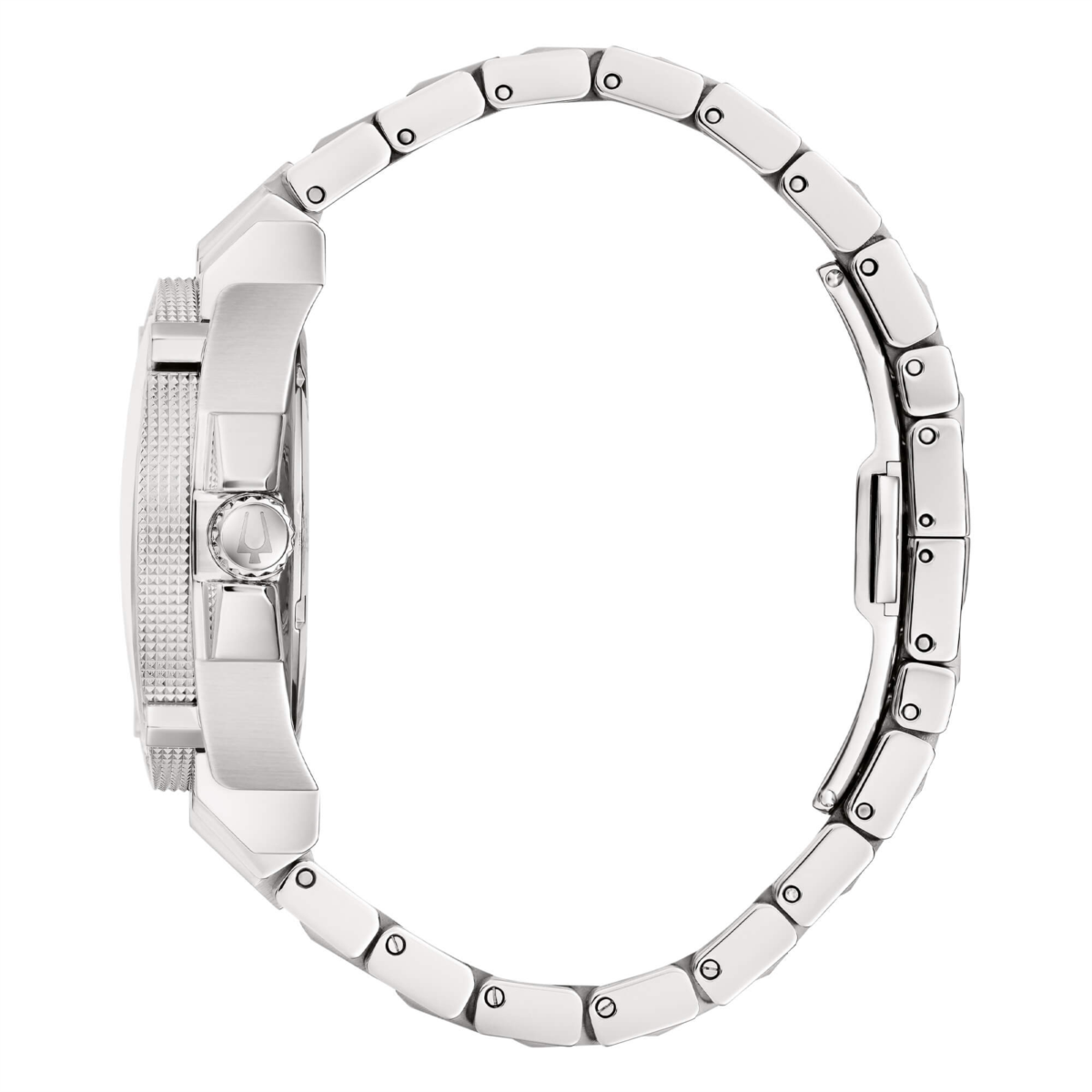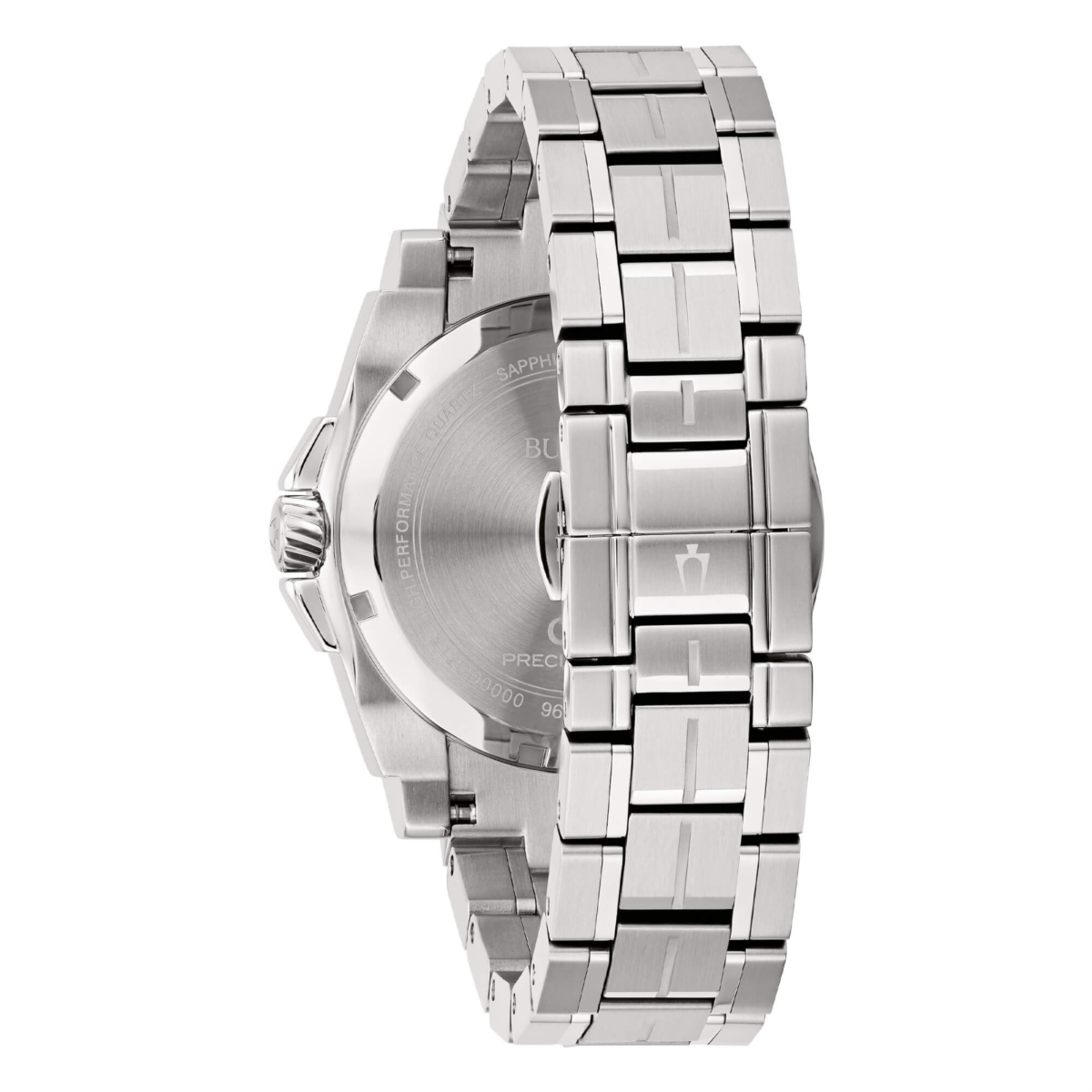 Orologio uomo bulova, 96B417, collezione icon, movimento al quarzo, solo tempo, cassa in acciaio 40mm, quadrante nero con datario, bracciale in acciaio, resistenza all'acqua 10atm