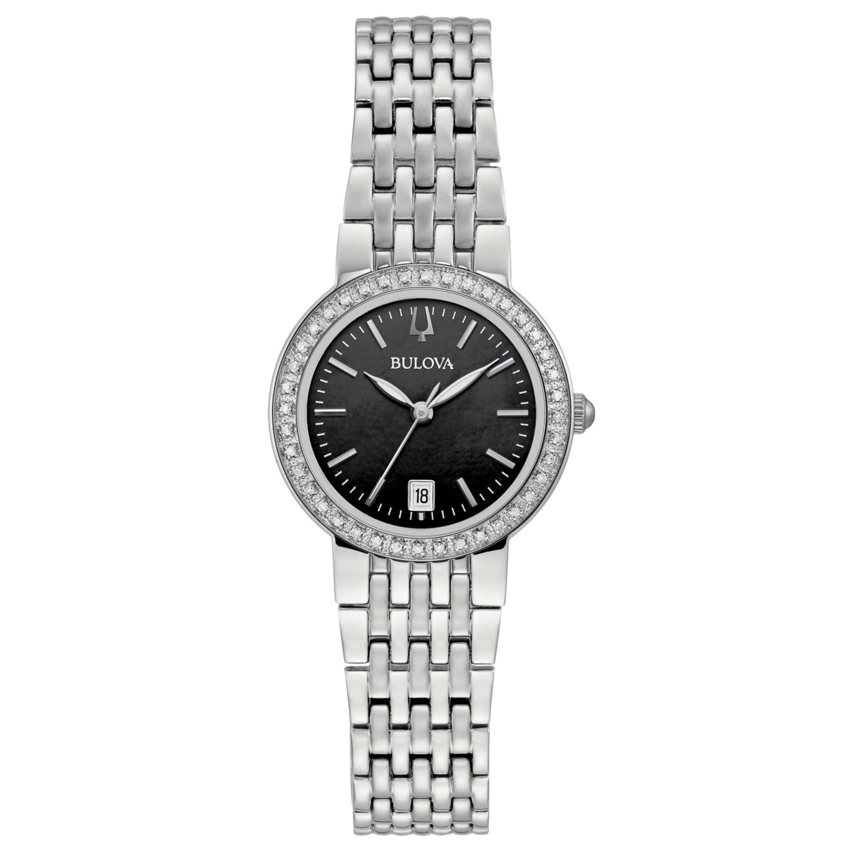 Orologio donna bulova, 96R241, collezione lady, movimento al quarzo, solo tempo, cassa in acciaio 26mm, quadrante madreperla nera, bracciale in acciaio, resistenza all'acqua 3atm