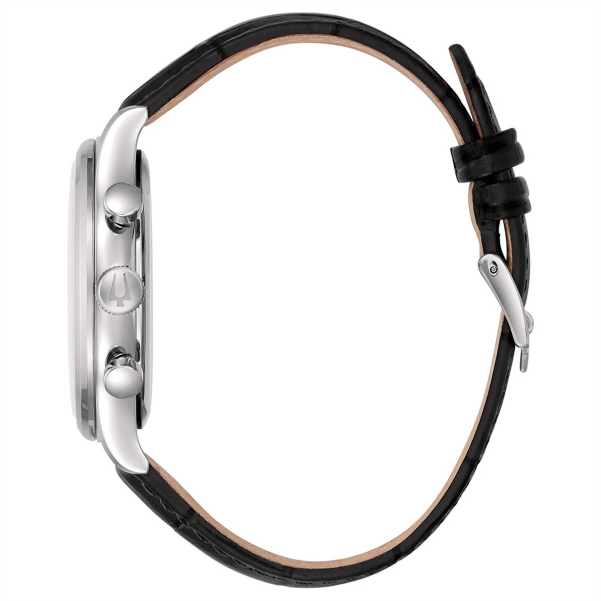 Orologio uomo bulova, 96b354, collezione precisionist, movimento al quarzo, cronografo, cassa in acciaio 43mm, quadrante bianco con datario, cinturino in pelle, resistenza all'acqua 3atm