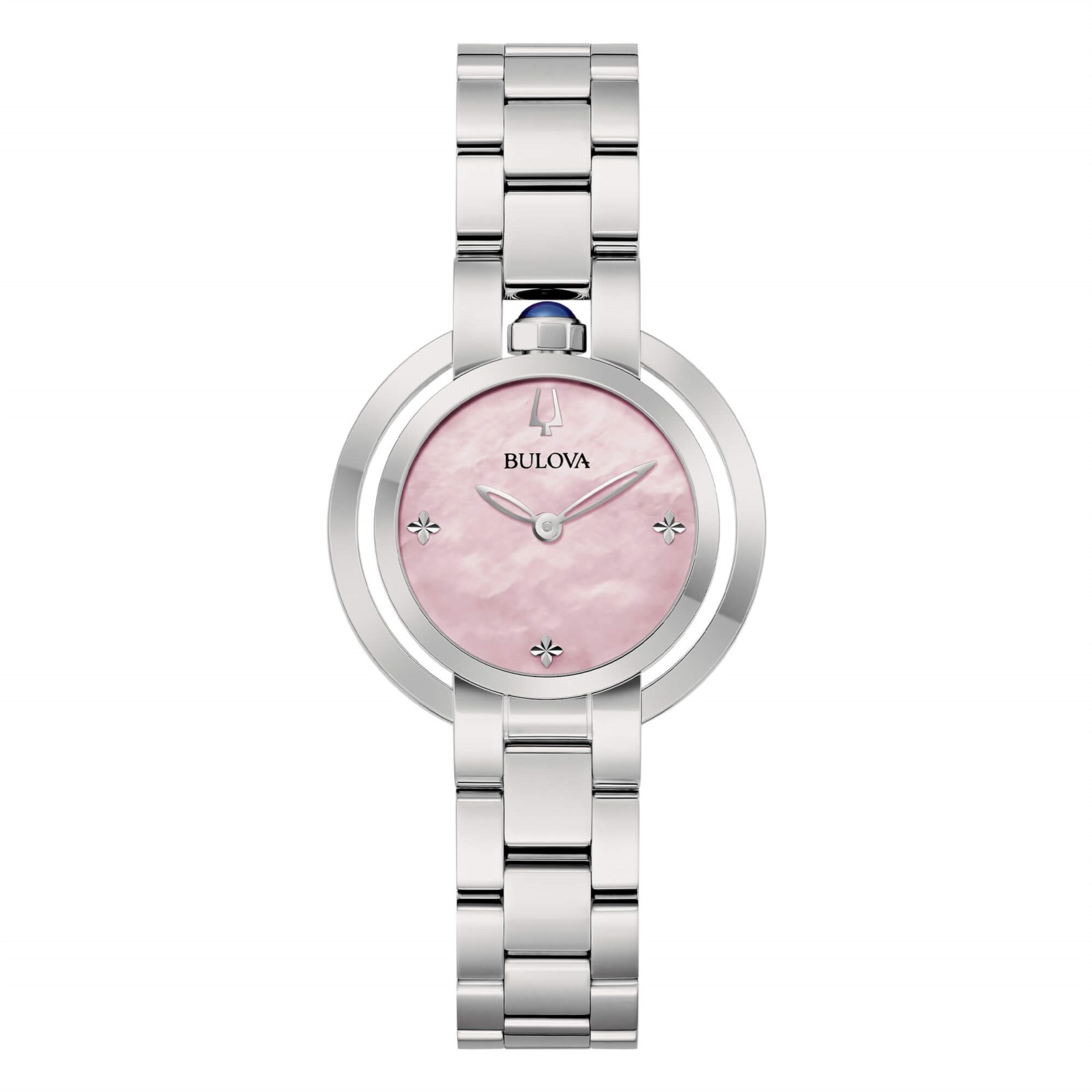 Orologio donna bulova, 96L338, collezione rubaiyat, movimento al quarzo, solo tempo, cassa in acciaio 31mm, quadrante rosa, vetro zaffiro, bracciale in acciaio, resistenza all'acqua 3 bar