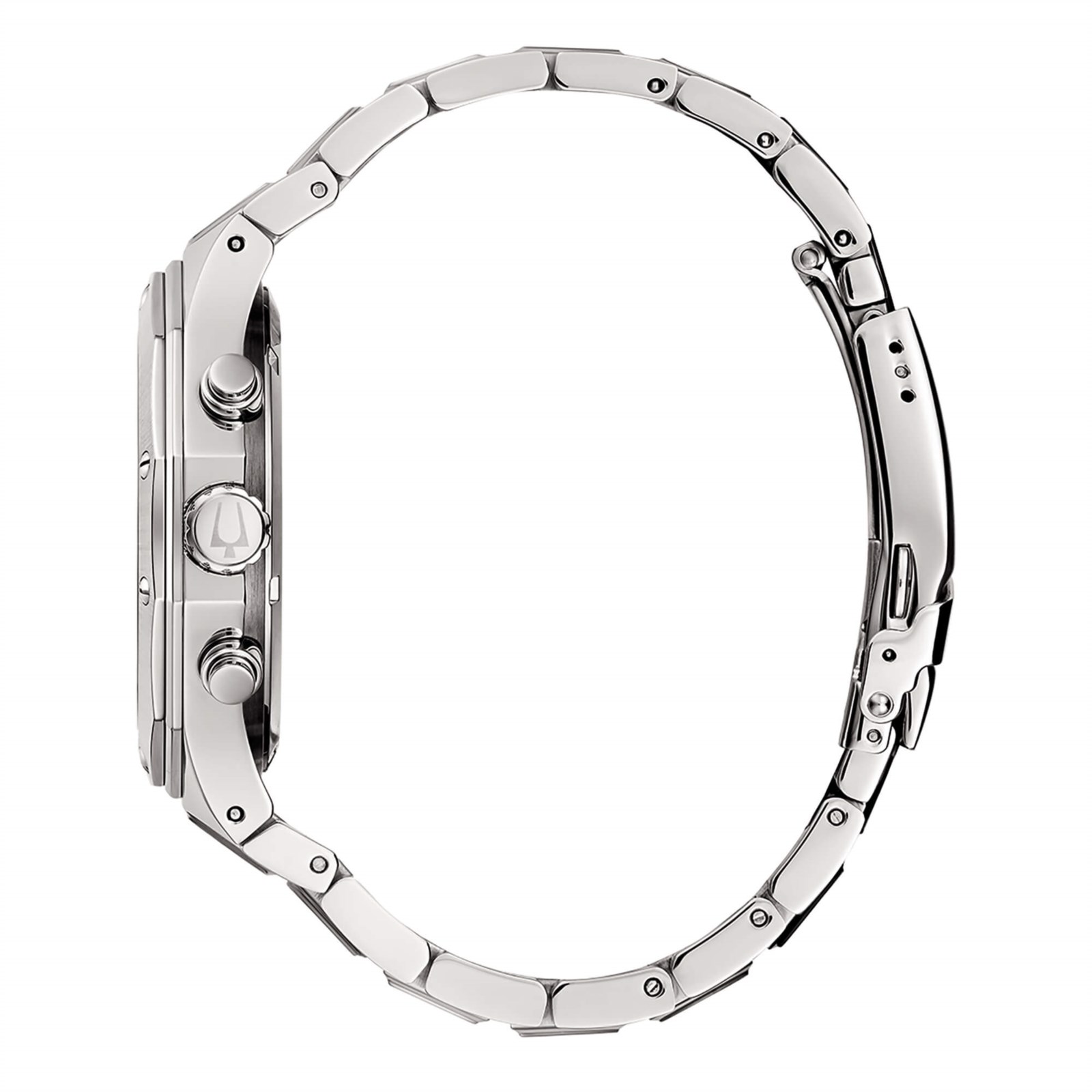 Orologio uomo bulova, 96B410, collezione sutton, movimento al quarzo, cronografo, cassa in acciaio 41mm, quadrante nero con datario, bracciale in acciaio, resistenza all'acqua 3arm