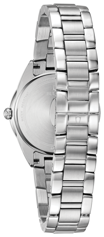 Orologio bulova da donna , 96R228, collezione sutton, movimento quarzo, solo tempo, cassa in acciaio da 32 mm, quadrante madre-perla con 3 diamanti, vetro minerale zaffiro, bracciale in acciaio inox con chiusura deployante.