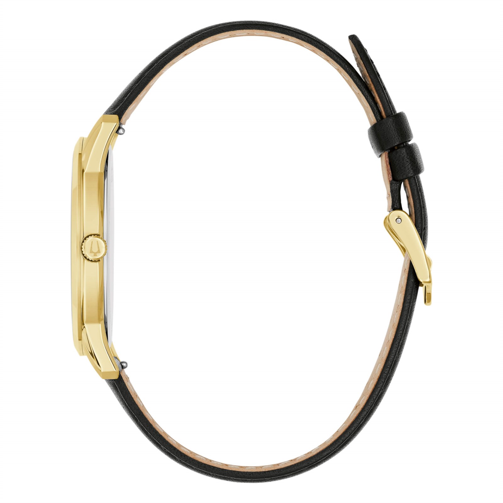 Orologio uomo bulova, 97B238, collezione sutton, movimento al quarzo, solo tempo, cassa in acciaio dorato 40mm, quadrante con datario, cinturino in pelle, resistenza all'acqua 3 bar