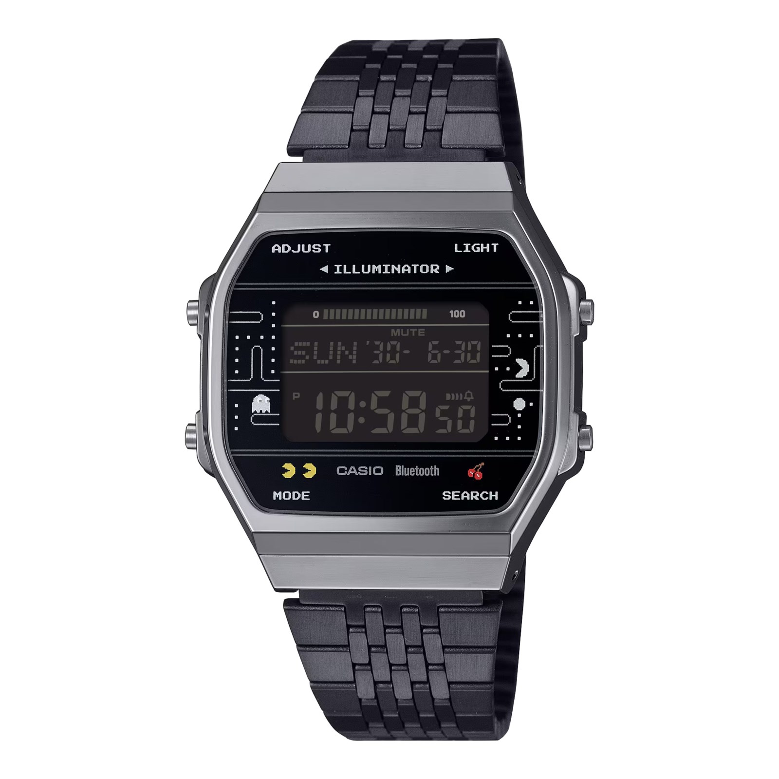 Orologio unisex casio, ABL-100WEPC-1BER, collezione iconic, movimento al quarzo, digitale, cassa in resina 41.6 × 37.9 × 8.2 mm, lunetta in cromato, bracciale in acciaio nero, impermeabile Bluetooth: si connette a uno smartphone e regola automaticamente l'ora, Misurazione del conteggio dei passi: Intervallo di visualizzazione del conteggio dei passi: da 0 a 999.999 passi, Visualizzazione dell'avanzamento verso l'obiettivo passi (intervallo di impostazione dell'obiettivo passi: da 1.000 a 50.000, incrementi di 1.000 passi), Promemoria passi (segnala quando il conteggio dei passi è troppo basso, tramite display e segnale acustico), Grafico del conteggio dei passi (conteggio dei passi orari nelle ultime 7 ore su grafico a 6 livelli), promemoria passi, Mobile Link (collegamento wireless tramite Bluetooth®), Funzione di connessione all'app: Regolazione orologio automatica, Impostazione semplice dell'orologio, Ora internazionale di circa 300 città, Dati Life Log, Ora e posizione, trova telefono, Vetro in resina, Ora del secondo fuso orario (commutazione con l'ora del proprio fuso orario), Cronometro, Timer, 5 promemoria sonori giornalieri, segnale orario, Retroilluminazione LED, Durata illuminazione selezionabile (1, 5 secondi o 3 secondi), luminescenza, luce led ambra, Calendario automatico completo (fino all'anno 2099), Attivazione/disattivazione del segnale acustico di pressione pulsanti, Risparmio energetico attivato/disattivato, Visualizzazione/avviso dello stato della batteria, Precisione: ±15 secondi al mese (senza funzione Mobile Link), Indicazione dell'ora regolare: ora, minuto, secondo, pm, anno, mese, data, giorno del mese