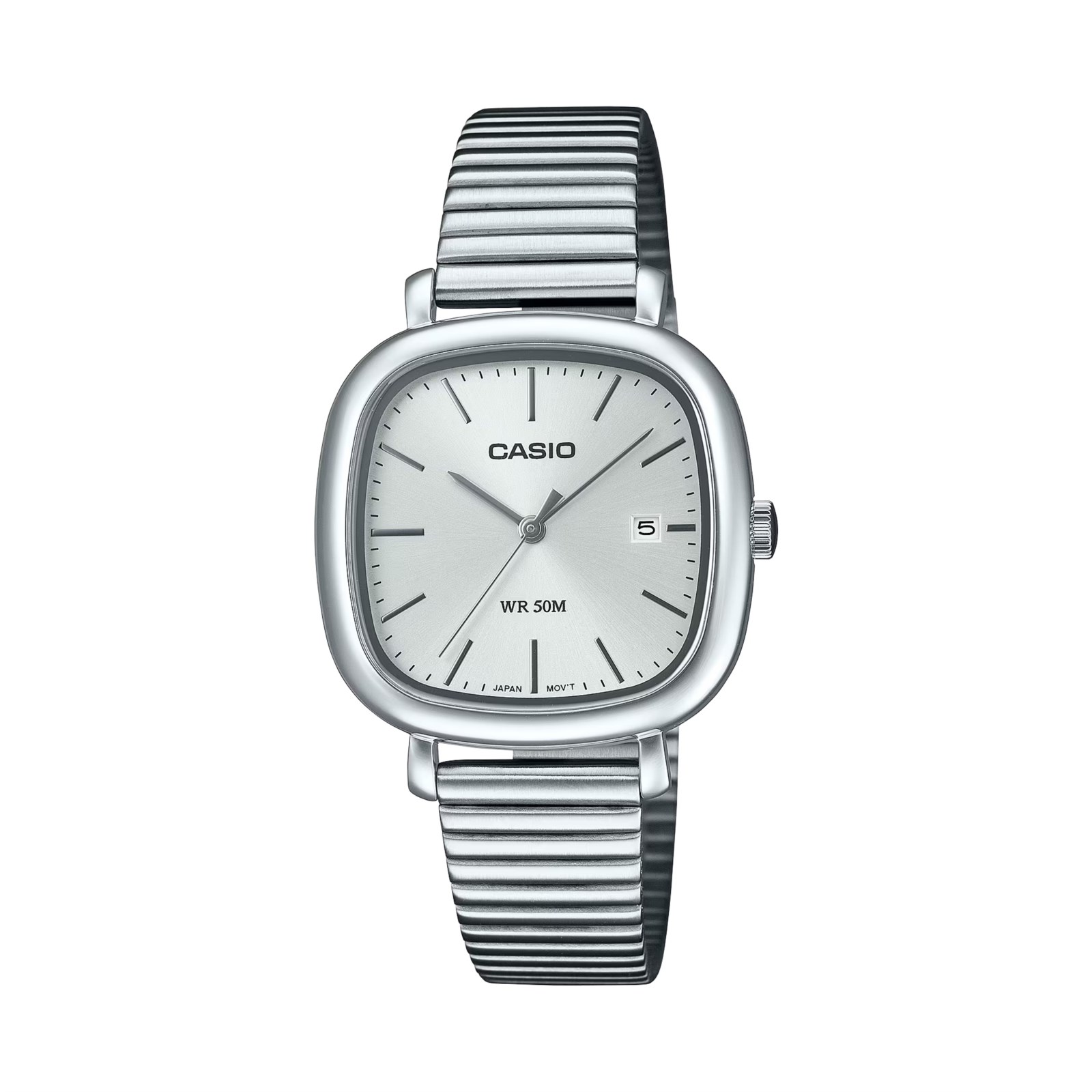 Orologio donna casio, LTP-B166D-7AVEF, collezione serie ltp-b166, movimento al quarzo, solo tempo, cassa in acciaio 36.7 × 30 × 7 mm, quadrante silver con datario, cinturino in acciaio, resistenza all'acqua 5 bar