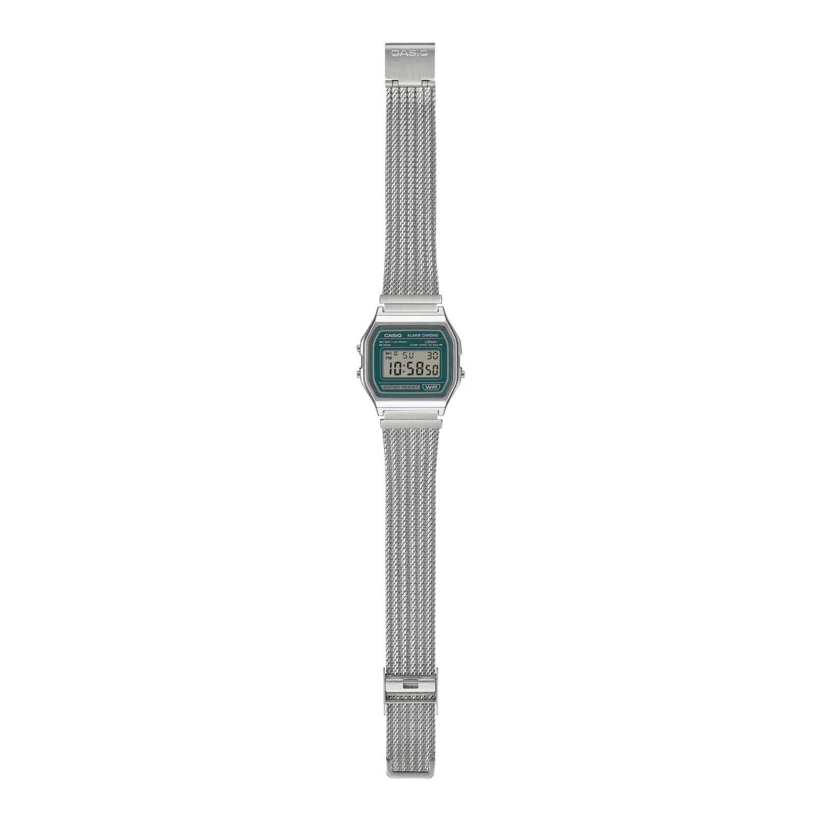 Orologio unisex casio vintage, A158WEM-3EF, collezione iconic, movimento al quarzo, digitale, cassa in resina 36.8 × 33.2 × 8.5 mm, cinturino in acciaio, impermeabile
