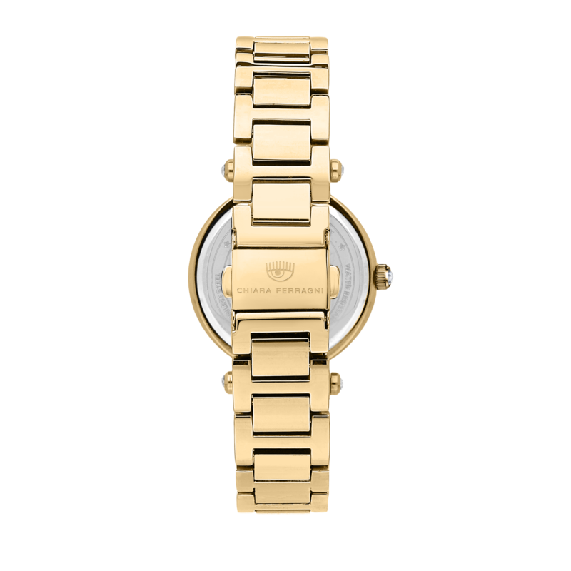 Orologio donna chiara ferragni, R1953103504, collezione lady like, movimento al quarzo, solo tempo, cassa in acciaio dorato 34mm, quadrante silver, bracciale in metallo dorato, resistenza all'acqua 5atm