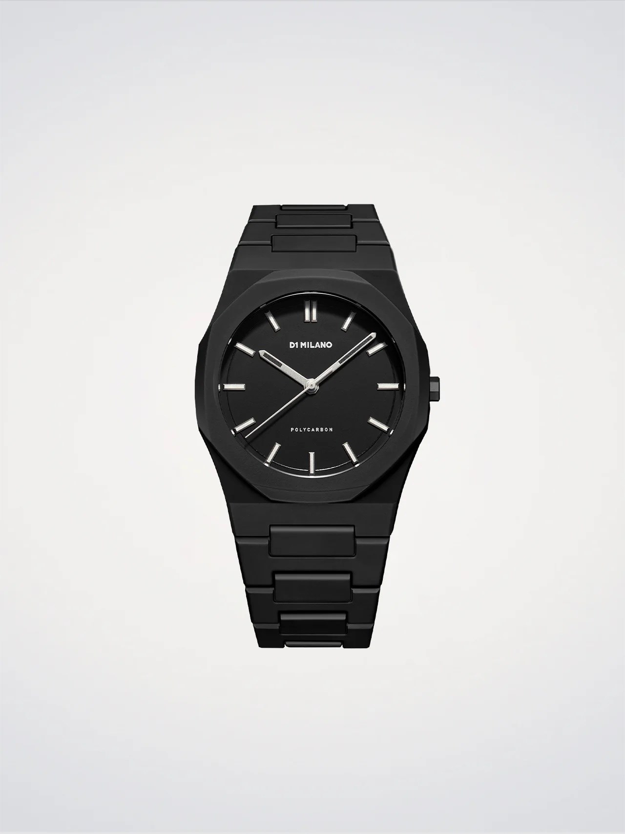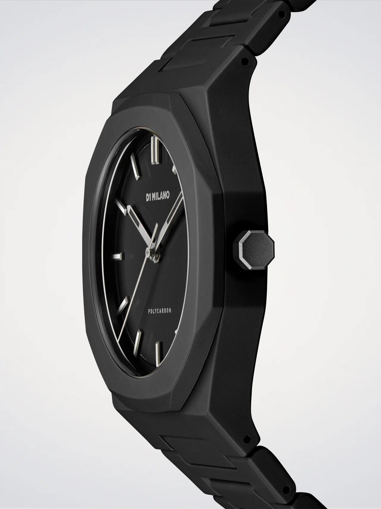 Orologio unisex d1 milano, D1-PCBJ11, collezione polycarbon, movimento al quarzo, solo tempo, cassa in policarbonato 40, 5mm, quadrante nero, ghiera in Policarbonato nero, fondello in Acciaio inossidabile nero, inciso, vetro minerale con rivestimento antiriflesso, bracciale in policarbonato, resistenza all'acqua 5atm
