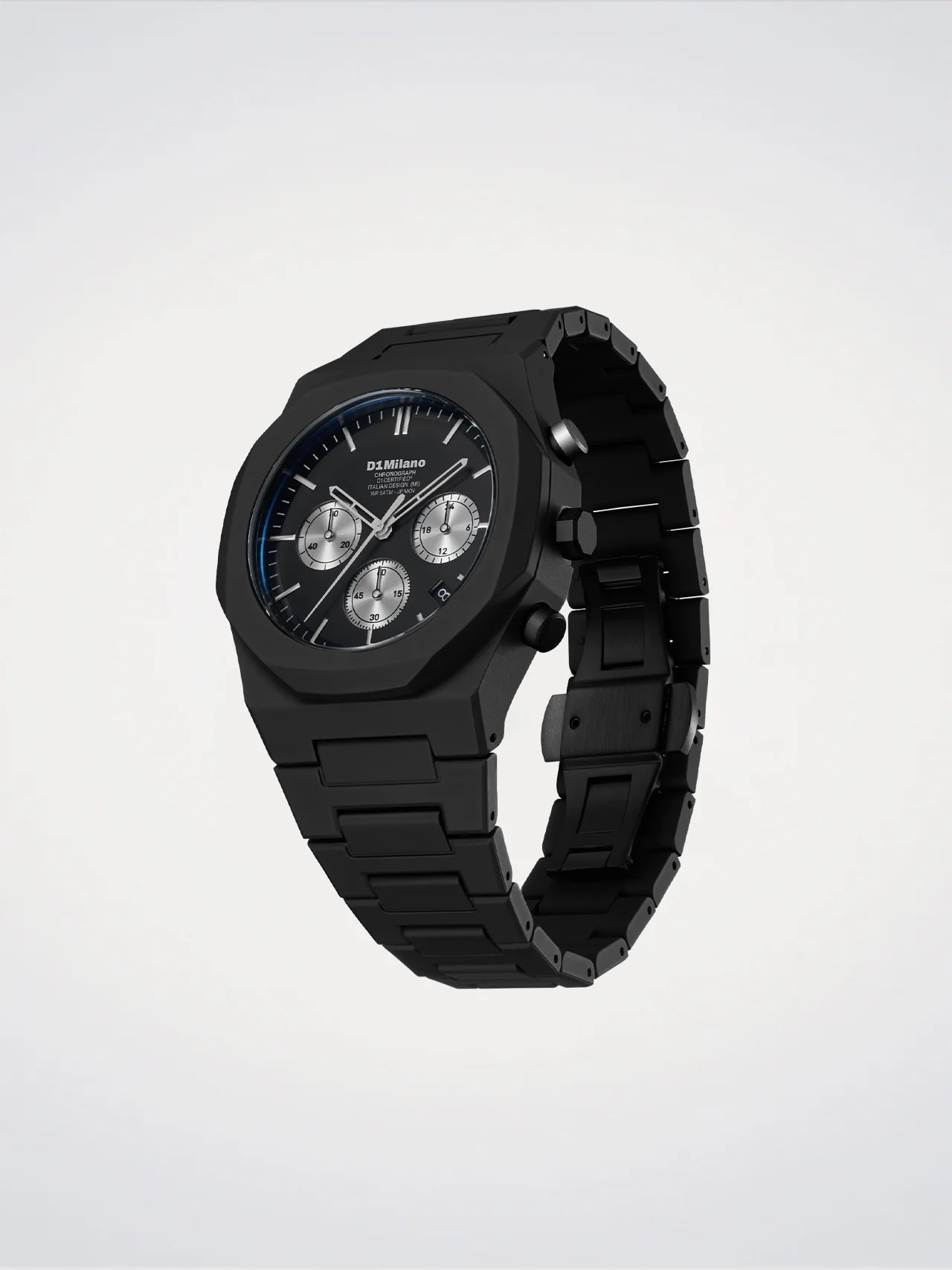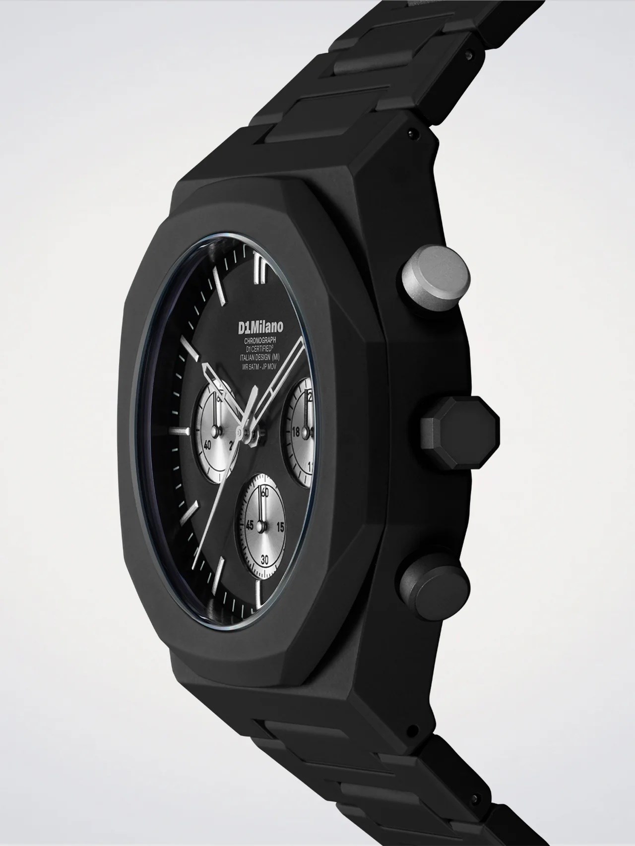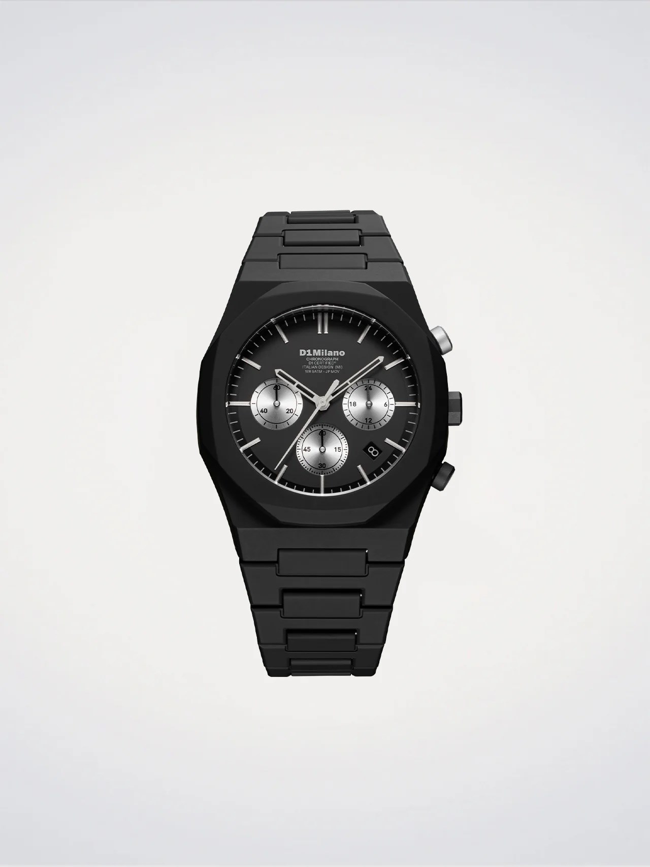 Orologio uomo d1 milano, D1-PHBJ15, collezione polychrono, movimento al quarzo, cronografo, cassa in policarbonato 40.5mm, quadrante in ottone nero con datario, vetro minerale rivestito antiriflesso, ghiera in policarbonato morbido al tatto, fondello in acciaio inossidabile, cinturino in policarbonato, resistenza all'acqua 5atm