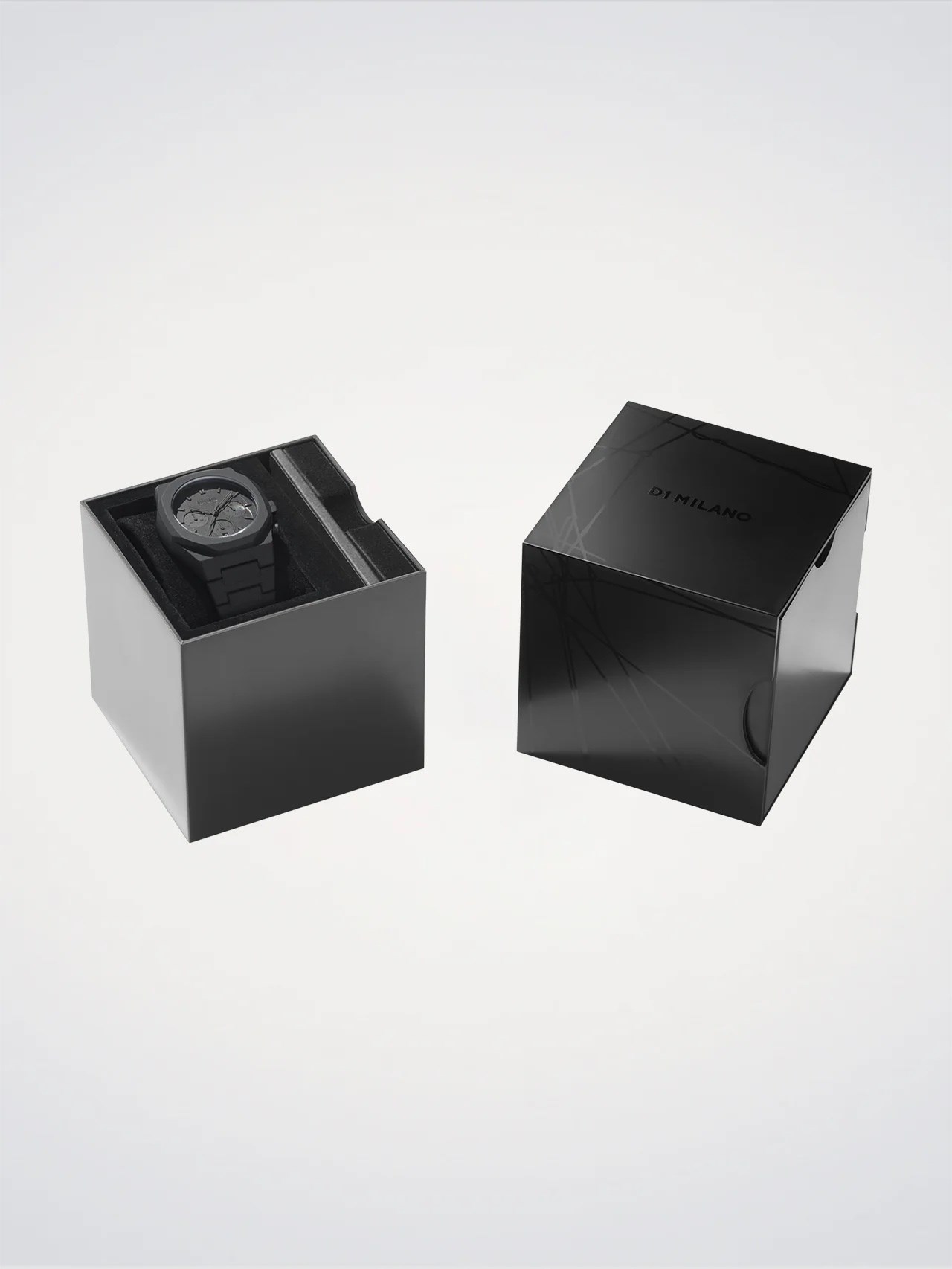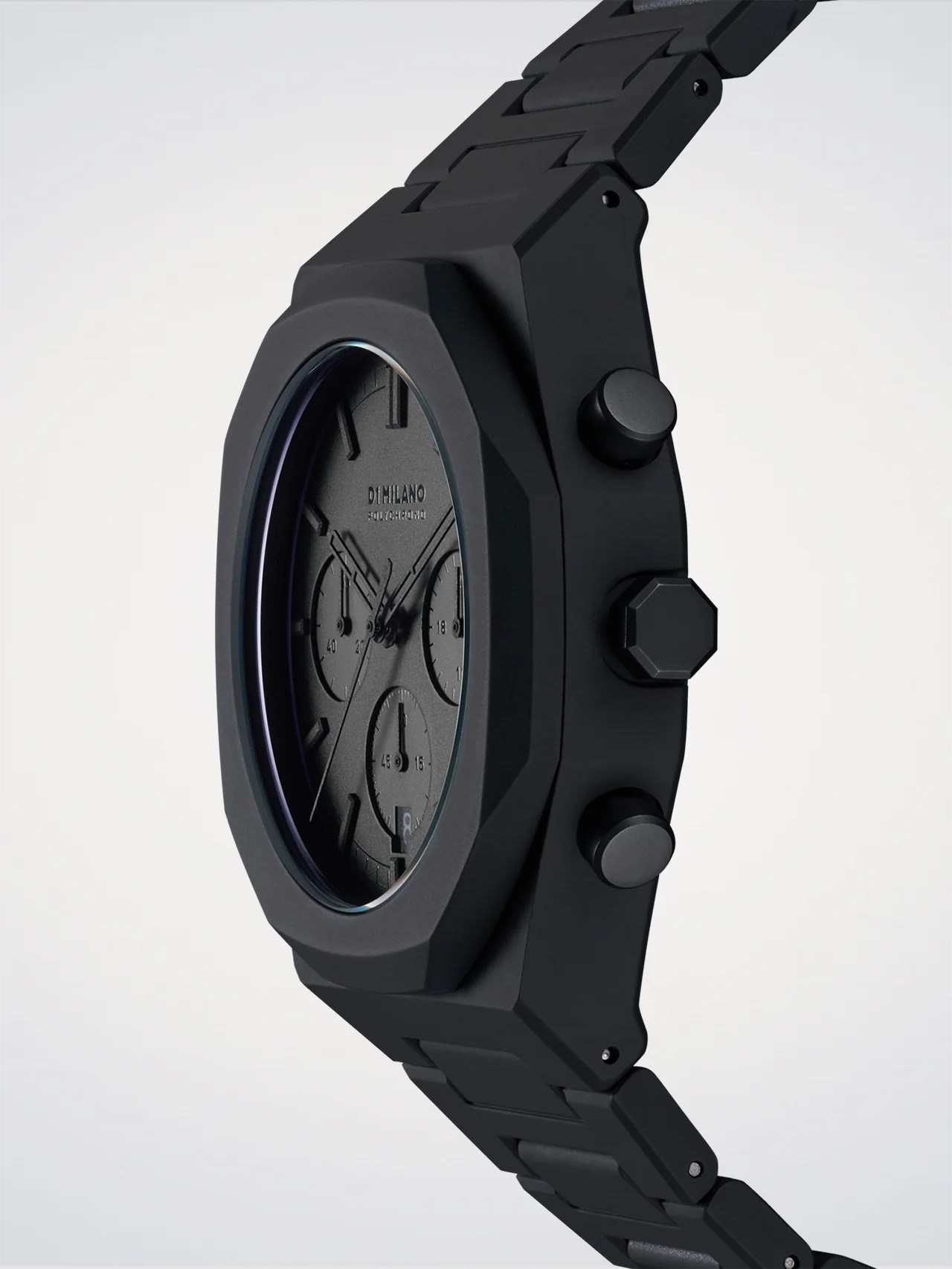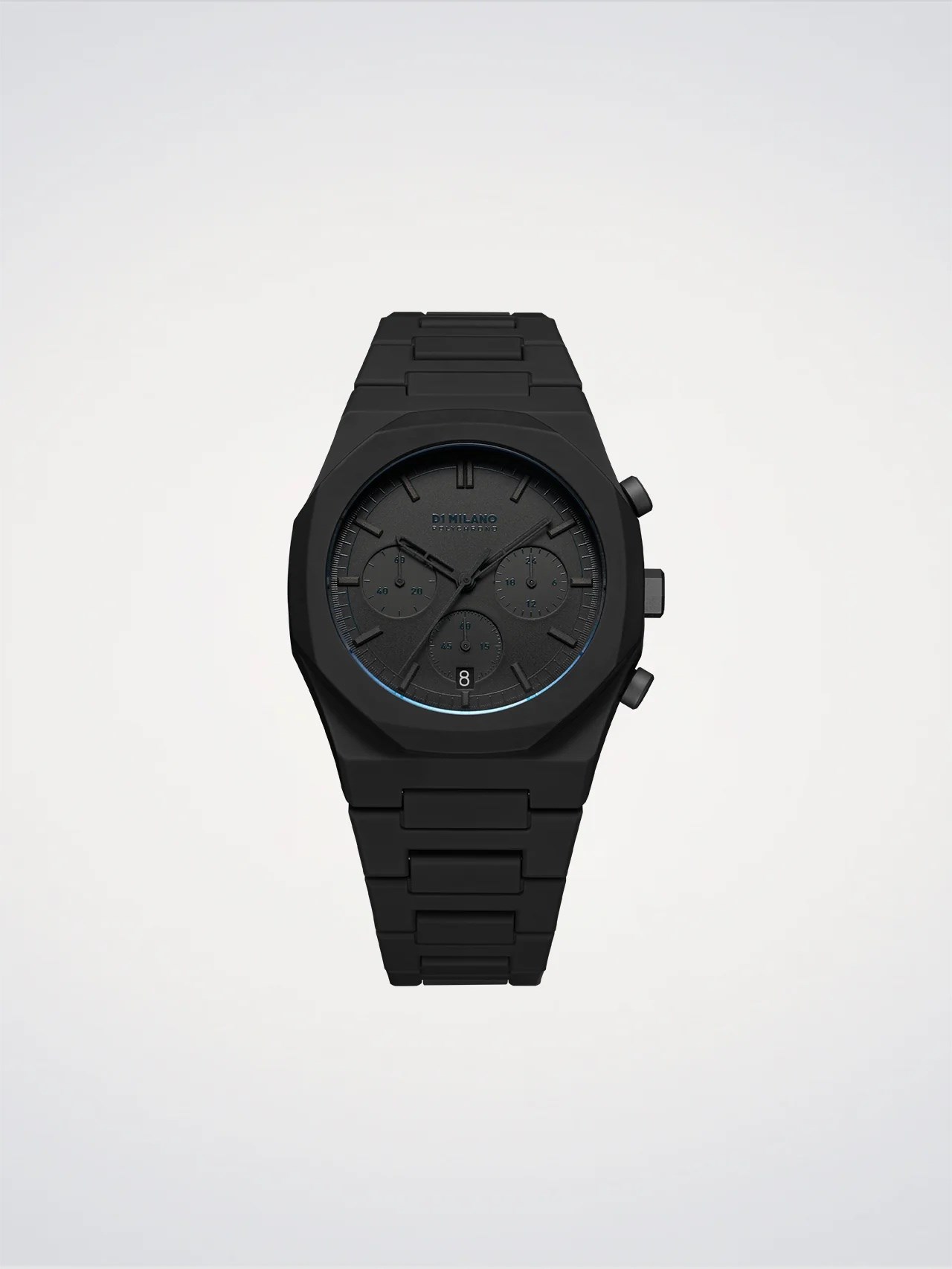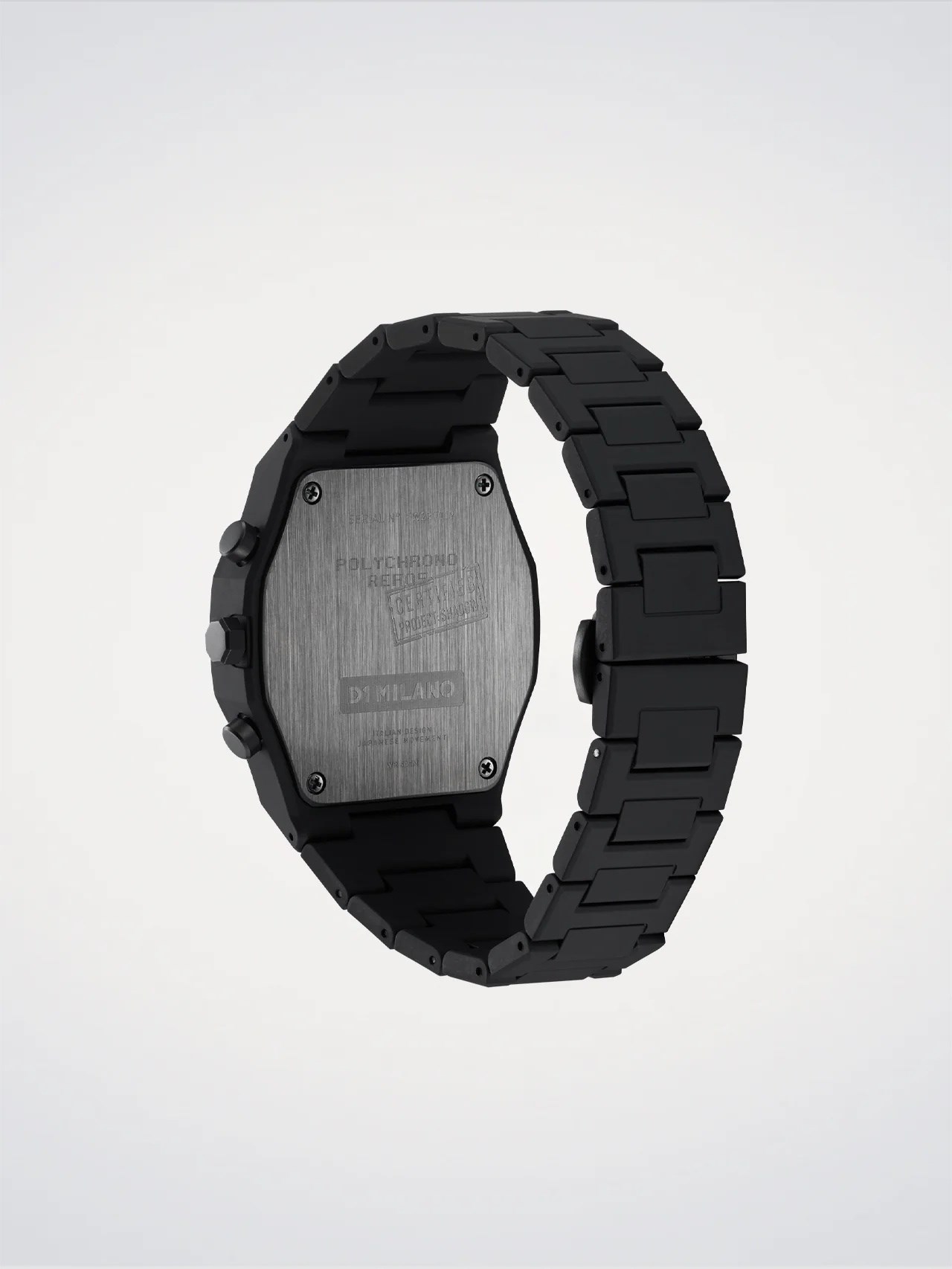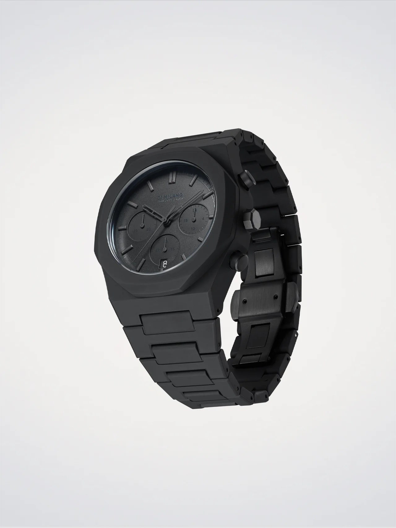 Orologio uomo d1 milano, D1-PHBJSH, collezione polychrono, movimento al quarzo, cronografo, cassa in policarbonato 40.5mm, quadrante grigio opaco con datario, ghiera in Policarbonato nero, fondello in Acciaio inossidabile PVD nero, vetro minerale con rivestimento antiriflesso, bracciale in policarbonato, resistenza all'acqua 5atm