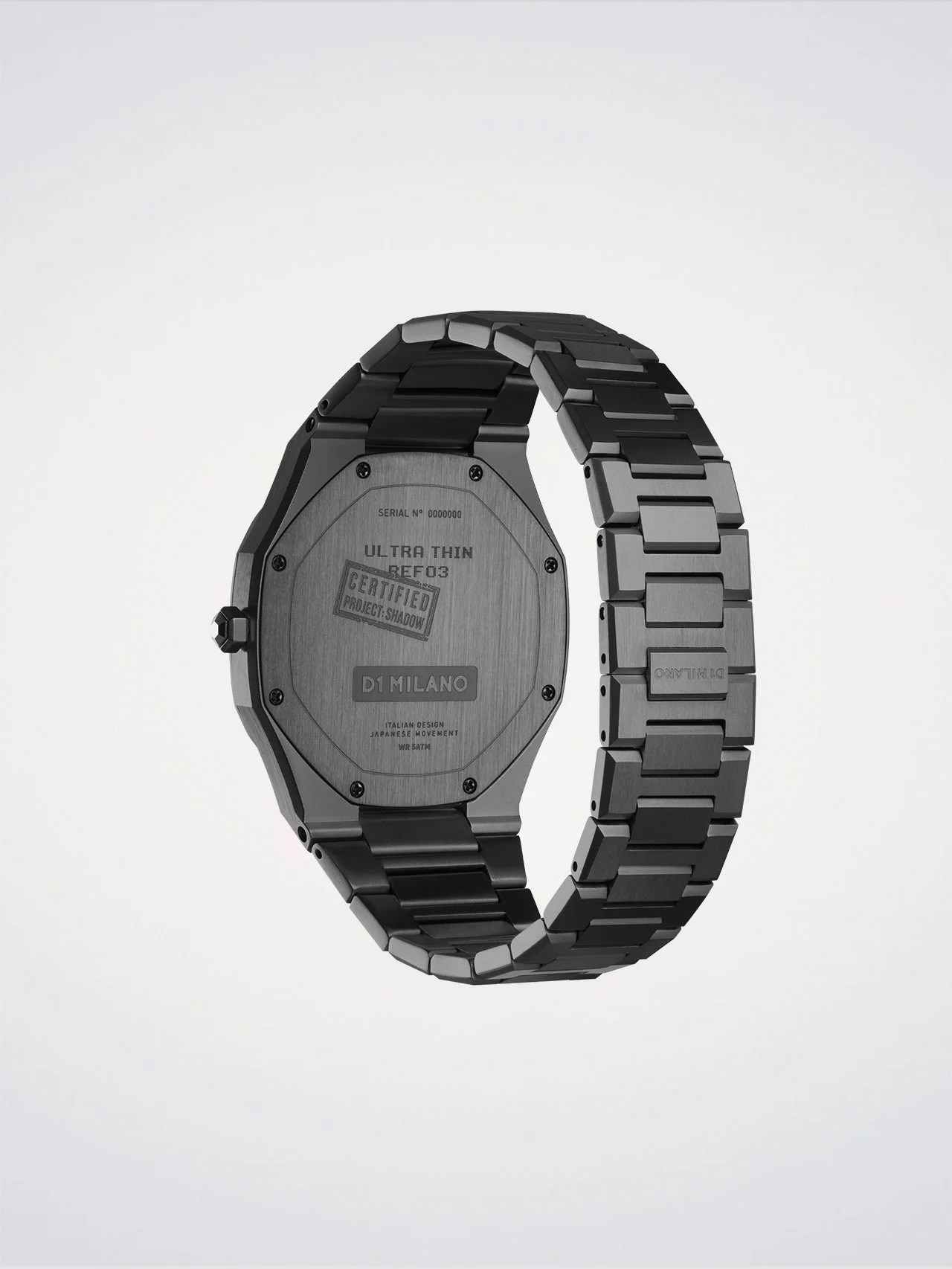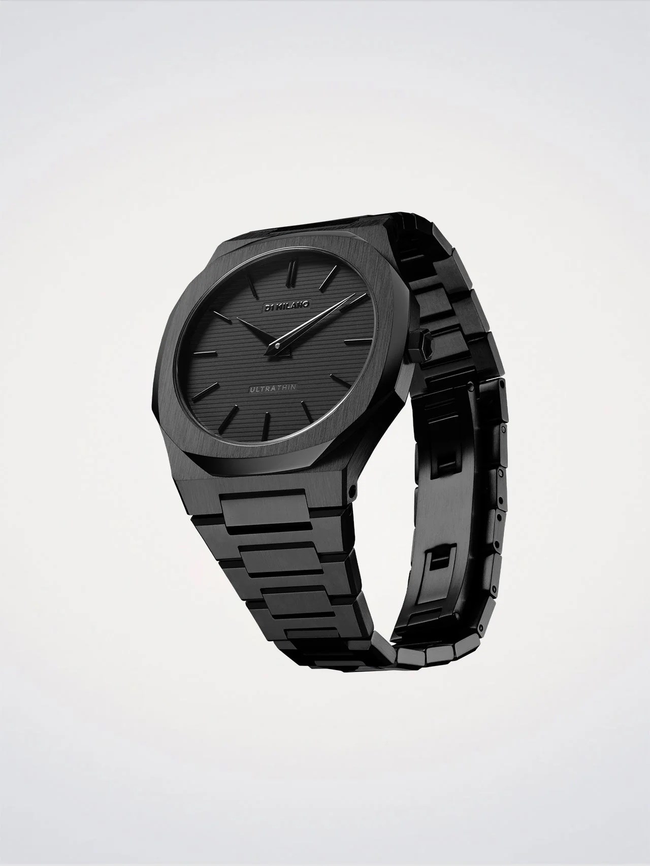 Orologio uomo d1 milano, D1-UTBJSH, collezione ultra thin, movimento al quarzo, solo tempo, cassa in acciaio nero 40mm, quadrante nero, fondello in acciaio nero, ghiera in acciaio nero, bracciale in acciaio nero, resistenza all'acqua 5atm