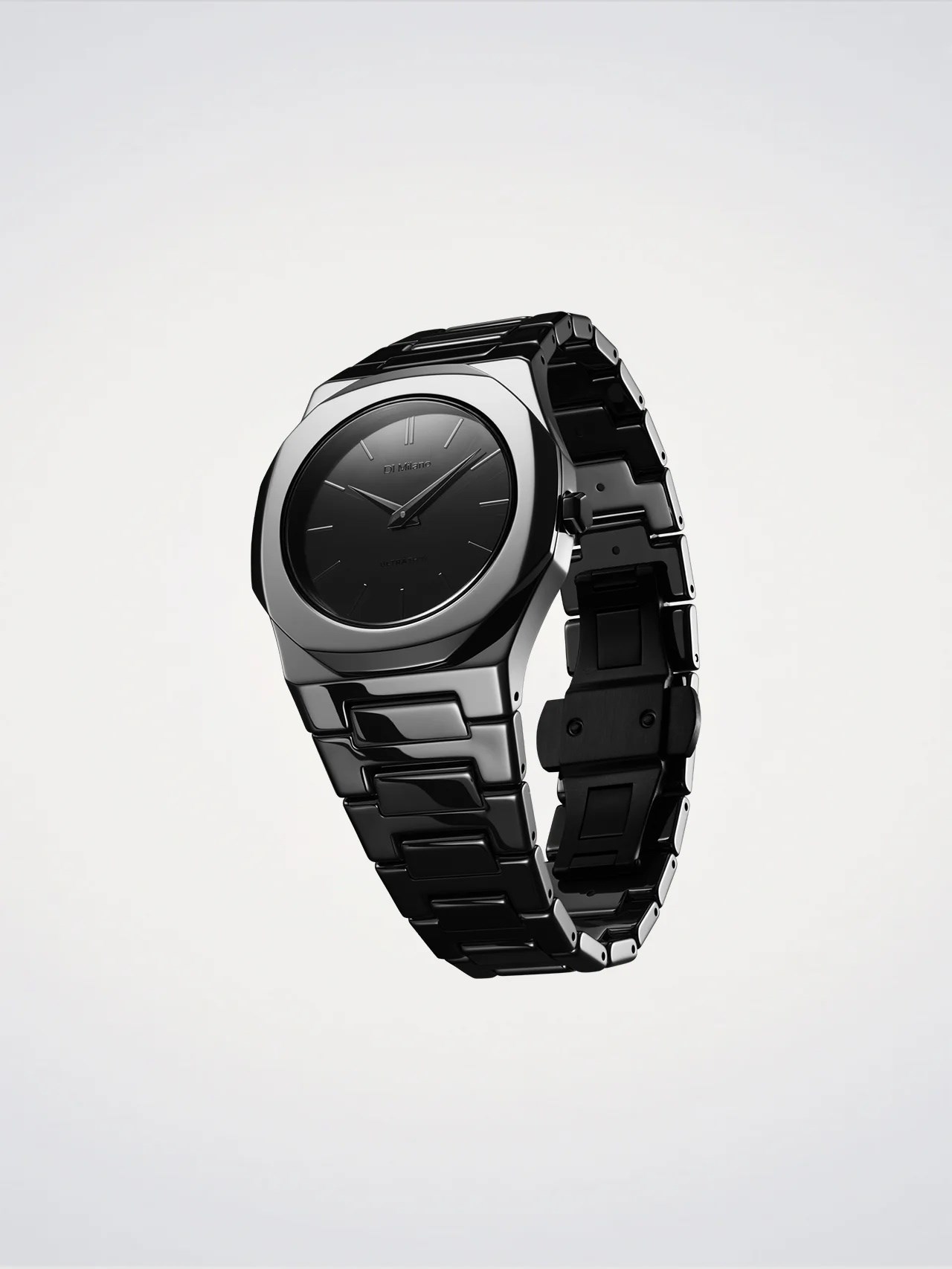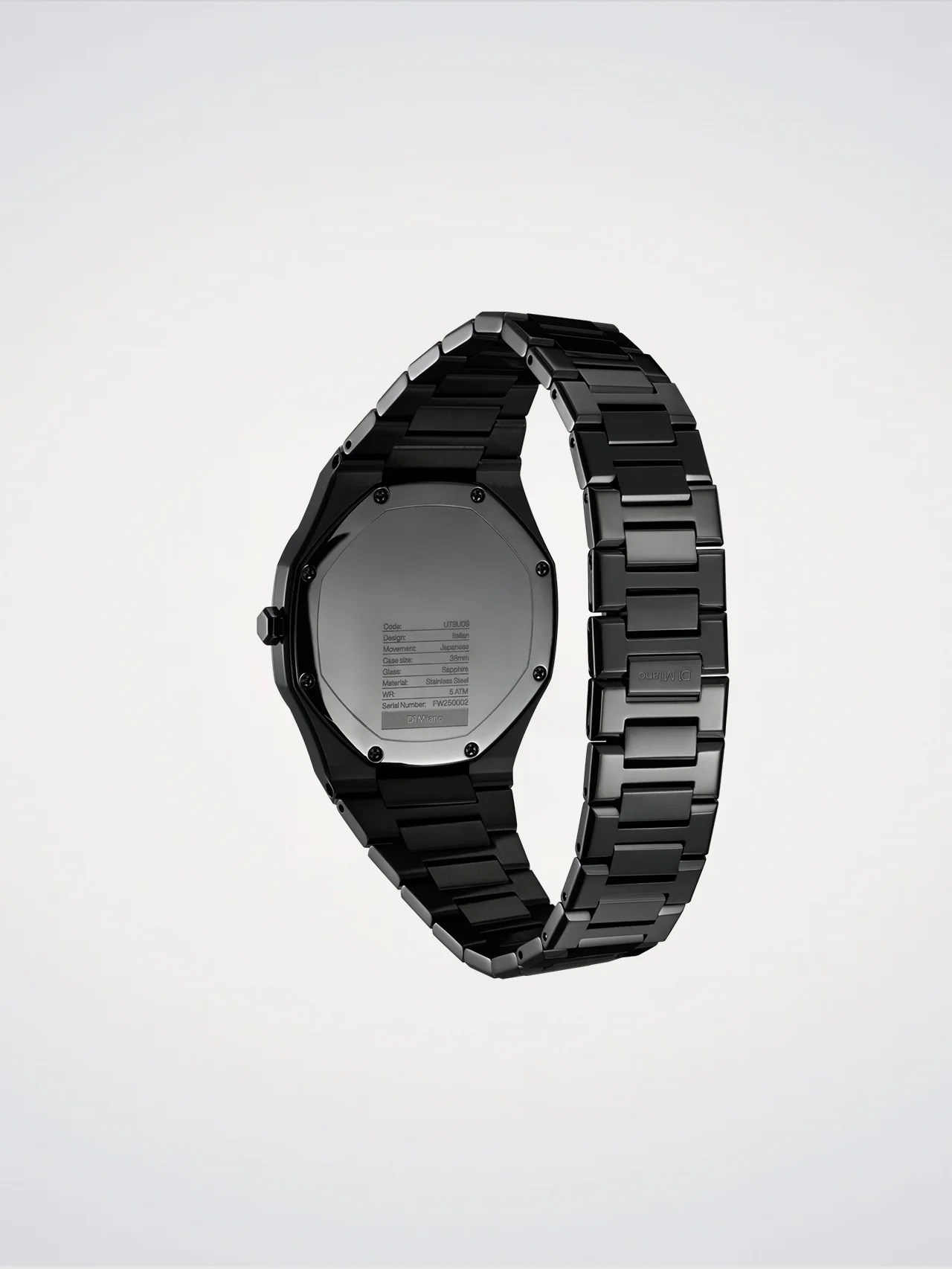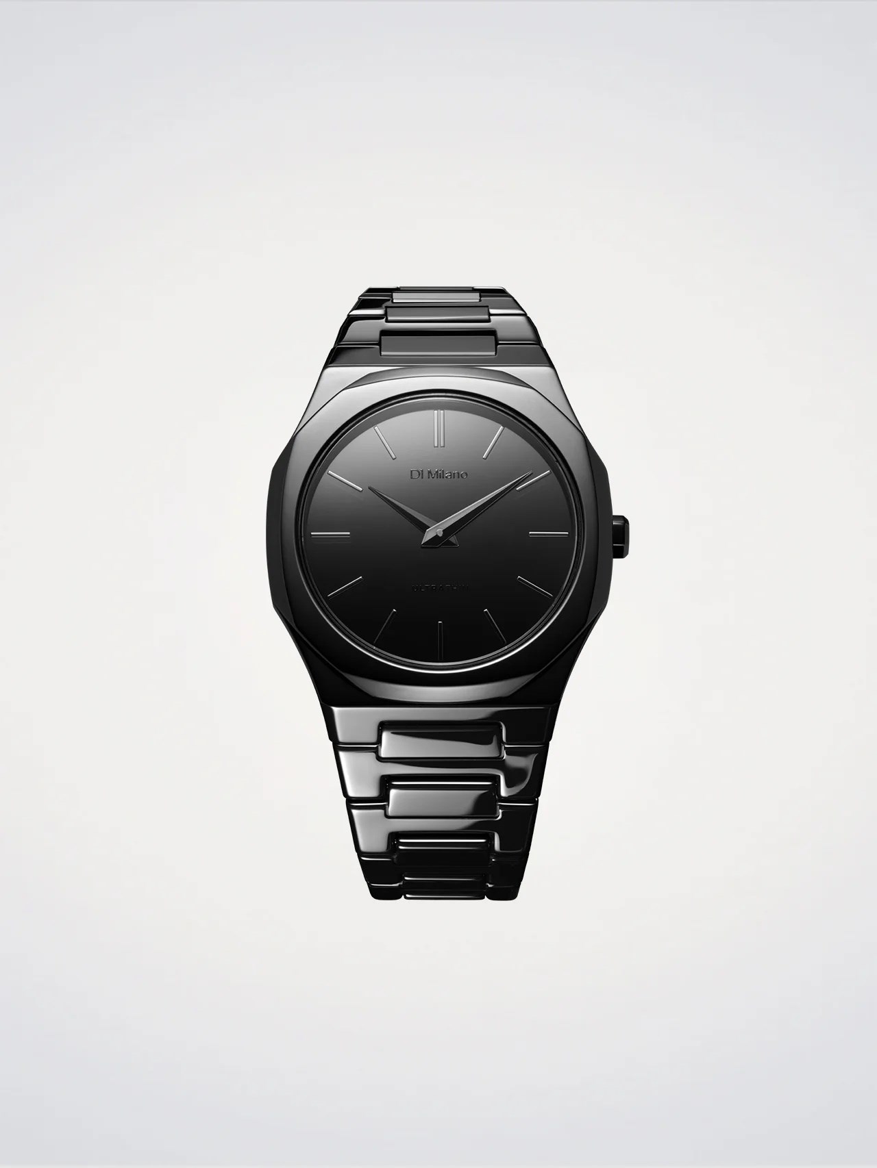 Orologio uomo d1 milano, D1-UTBU09 , collezione ultra thin, movimento al quarzo, solo tempo, cassa in acciaio nero 38mm, quadrante nero, fondello in acciaio nero, ghiera in acciaio nero, bracciale in acciaio nero, resistenza all'acqua 5atm