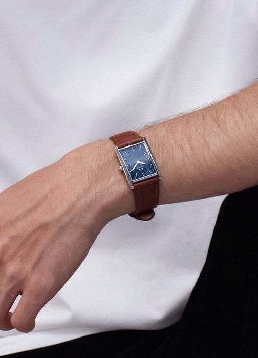 Orologio uomo daniel wellington, DW00100900, collezione bound, movimento al quarzo, solo tempo, cassa in acciaio 24mm, quadrante blu, cinturino in pelle marrone.