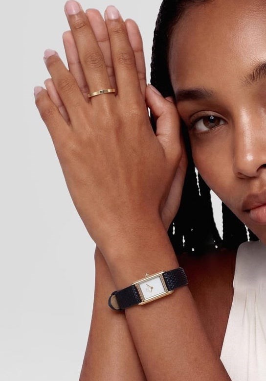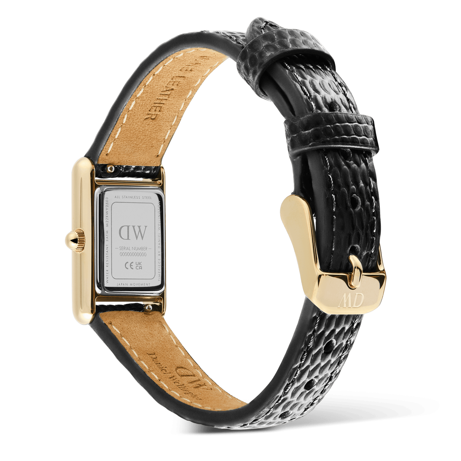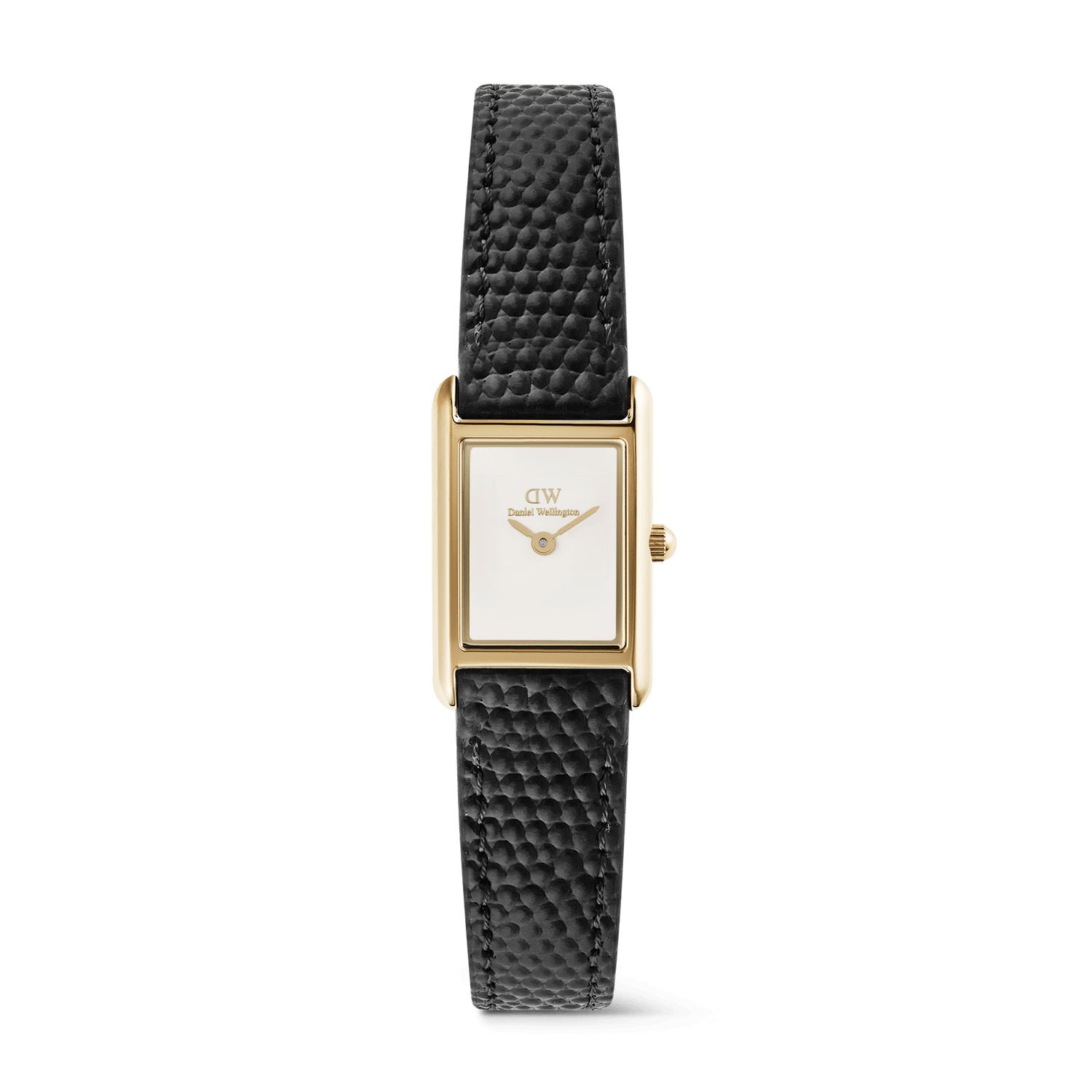 Orologio donna daniel wellington, DW00100903, collezione bound mini, movimento al quarzo, solo tempo, cassa rettangolare in acciaio dorato 17mm, cinturino in pelle nero.