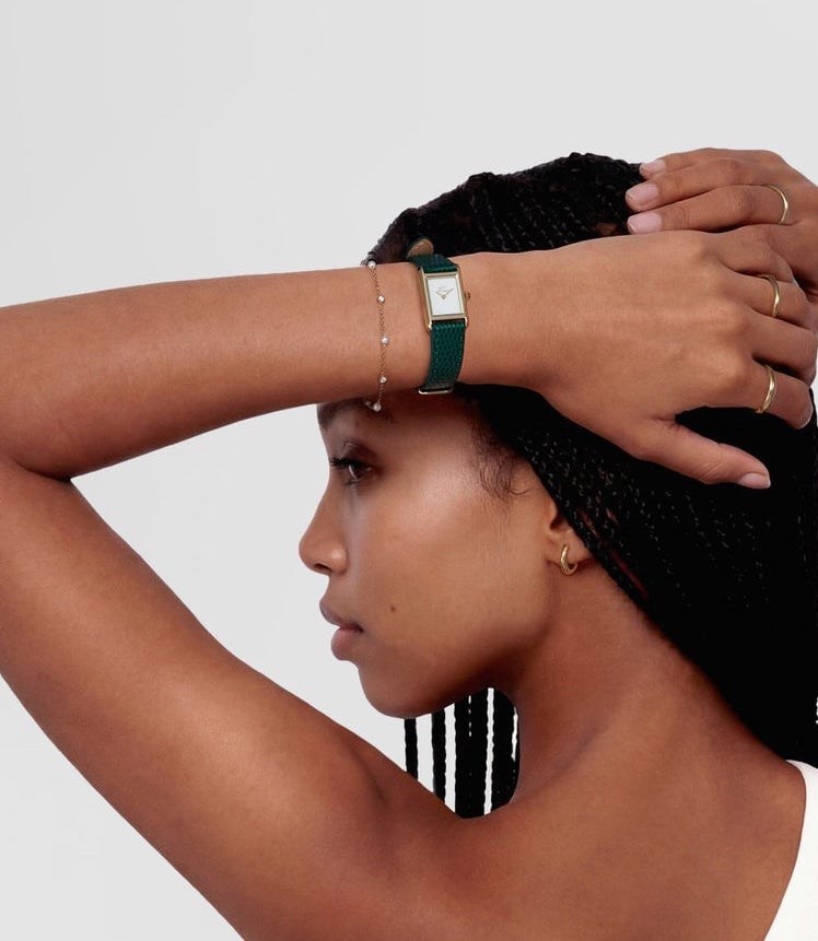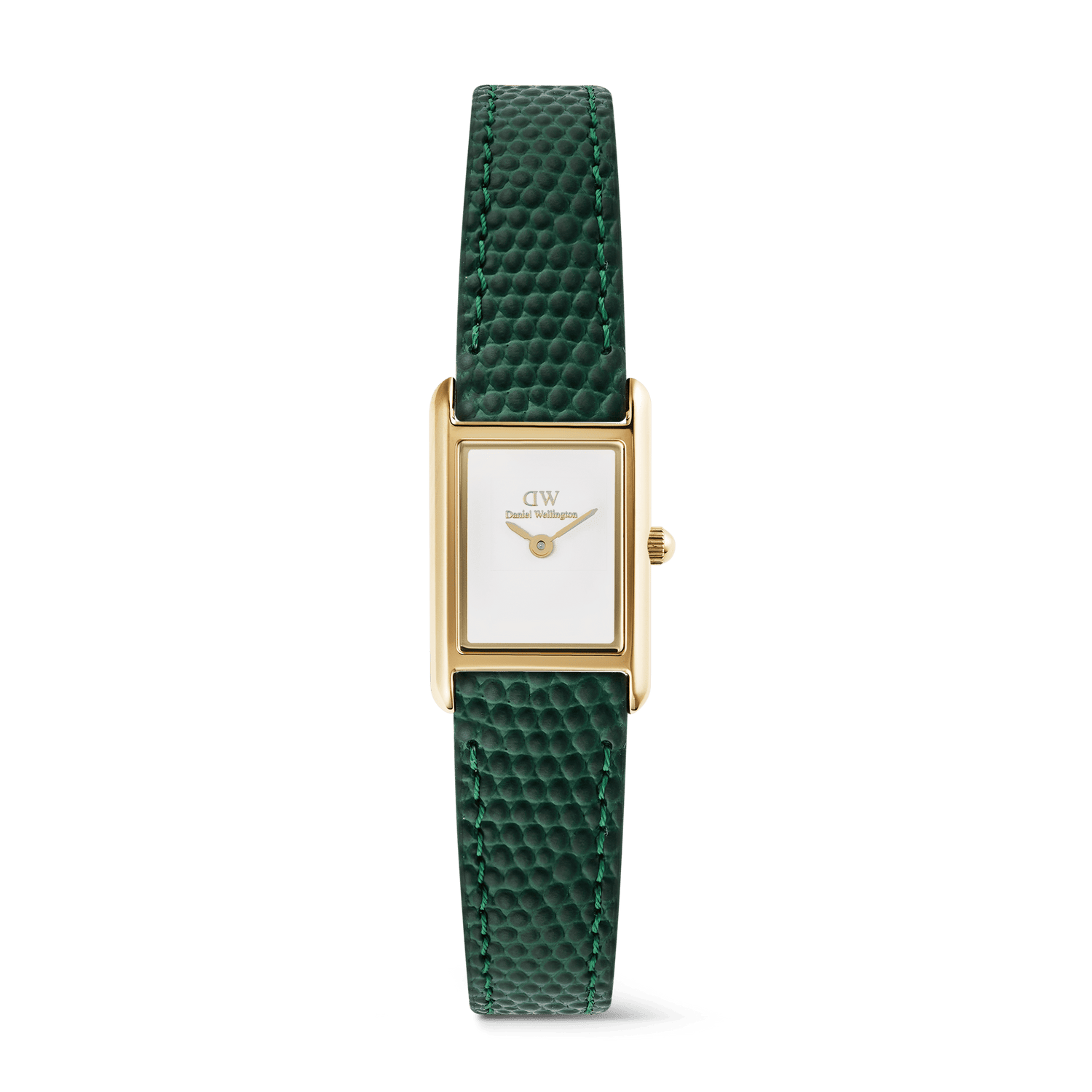 Orologio donna daniel wellington, DW00100906, collezione bound mini, movimento al quarzo, solo tempo, cassa in acciaio dorato 17mmx25, cinturino in pelle verde, resistenza all'acqua 3atm.