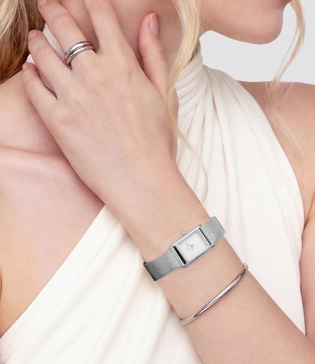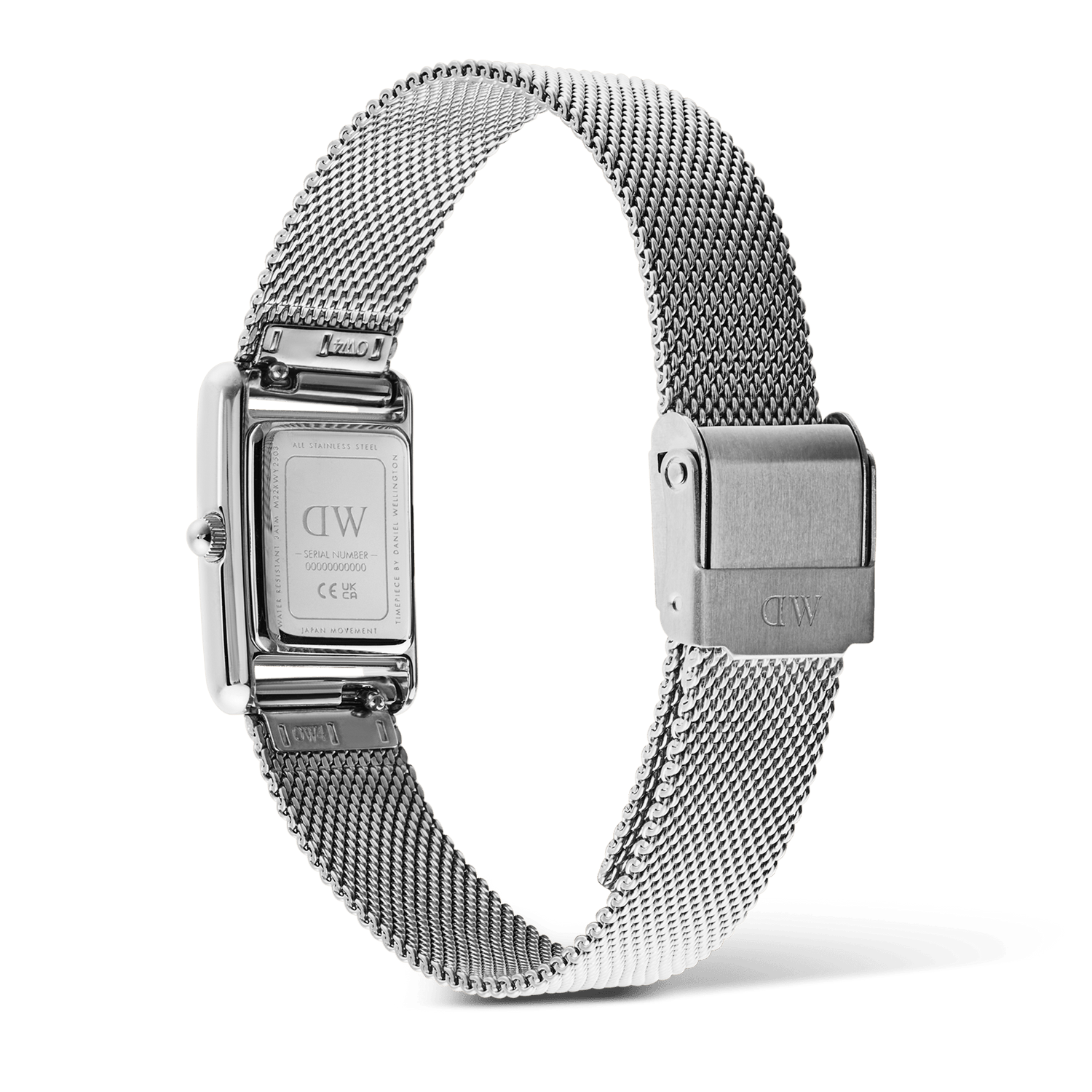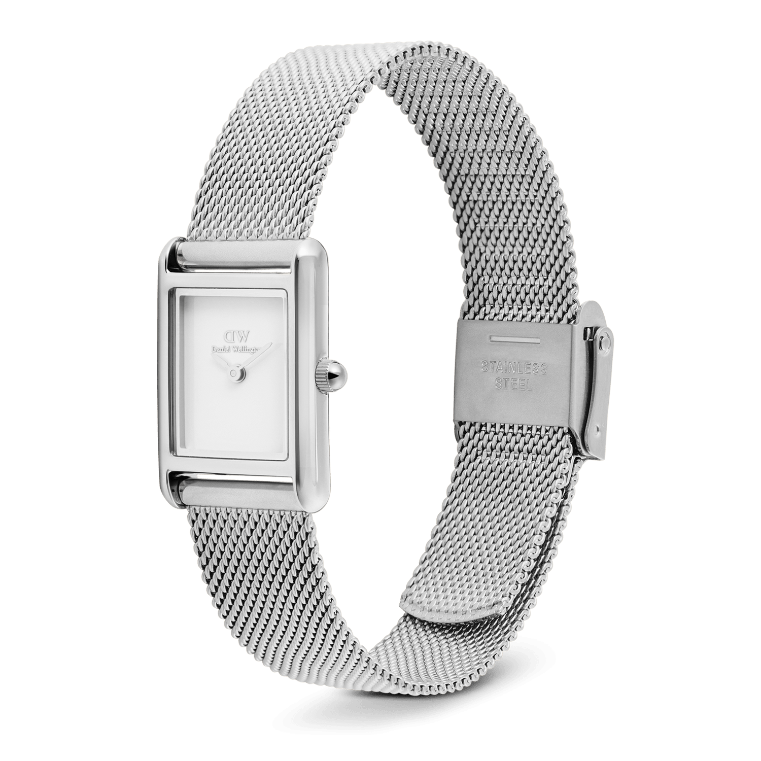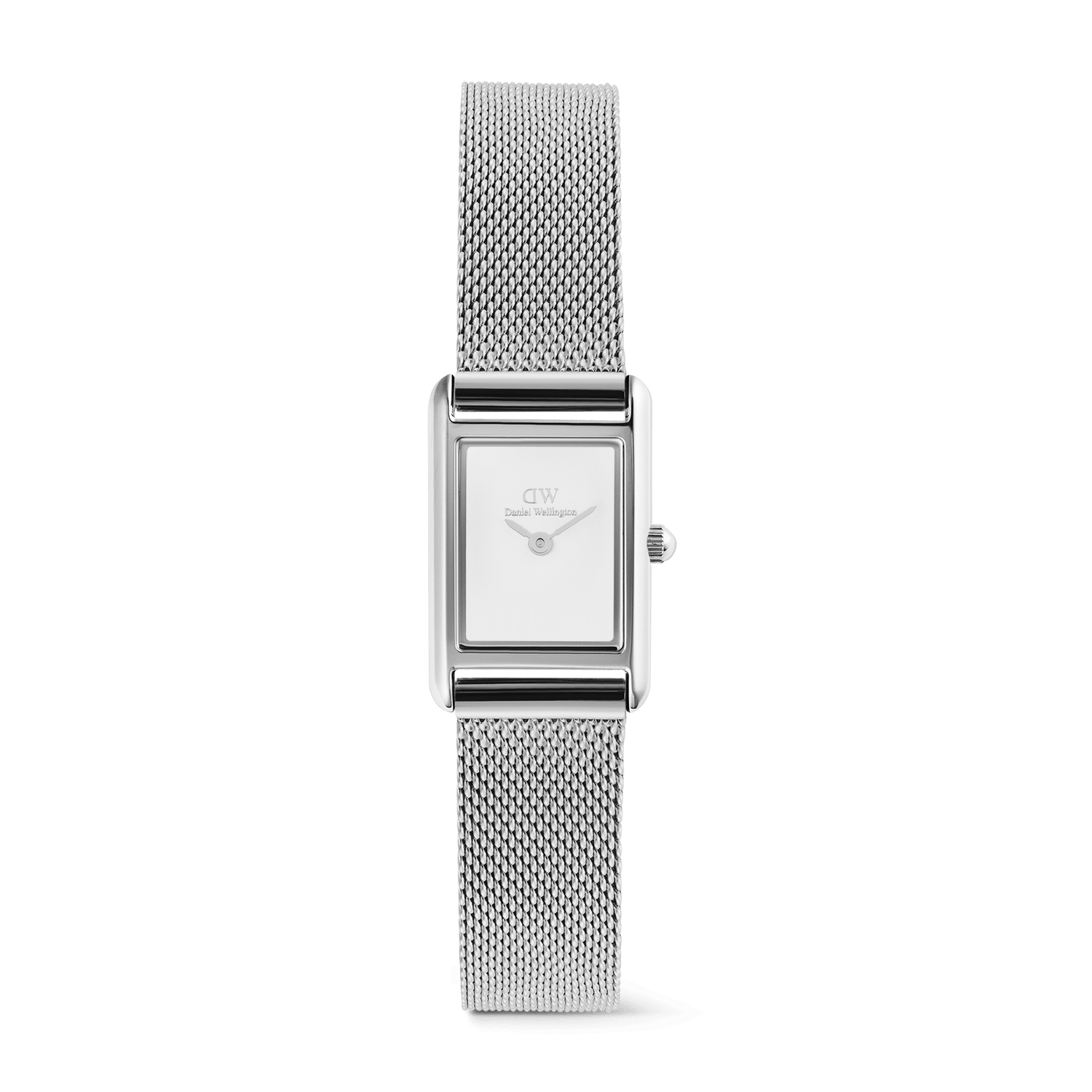 Orologio donna daniel wellington, DW00100927, collezione bound mini, movimento al quarzo, solo tempo, cassa in acciaio 17x25, 9mm, quadrante bianco, cinturino in acciaio, resistenza all'acqua 3atm.