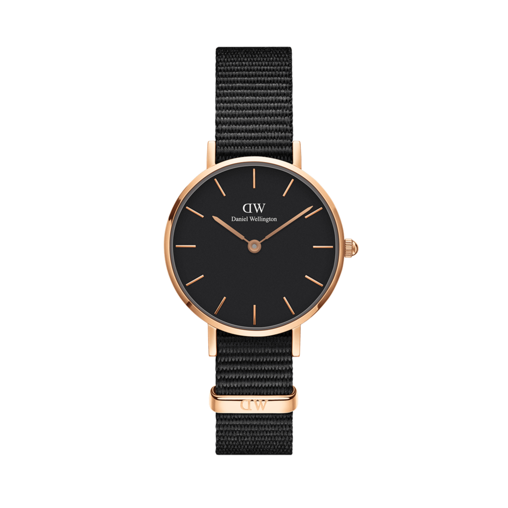 Orologio donna daniel wellington, Dw00100247, collezione classic petite, modello cornwall , movimento al quarzo quarzo japan citizen 1l22, cassa in acciaio 28 mm spessa 6mm, colore quadrante nero, colore bordo rosa, cinturinonato:nato impermeabile 3atm - evitare il contatto prolungato con l'acqua .