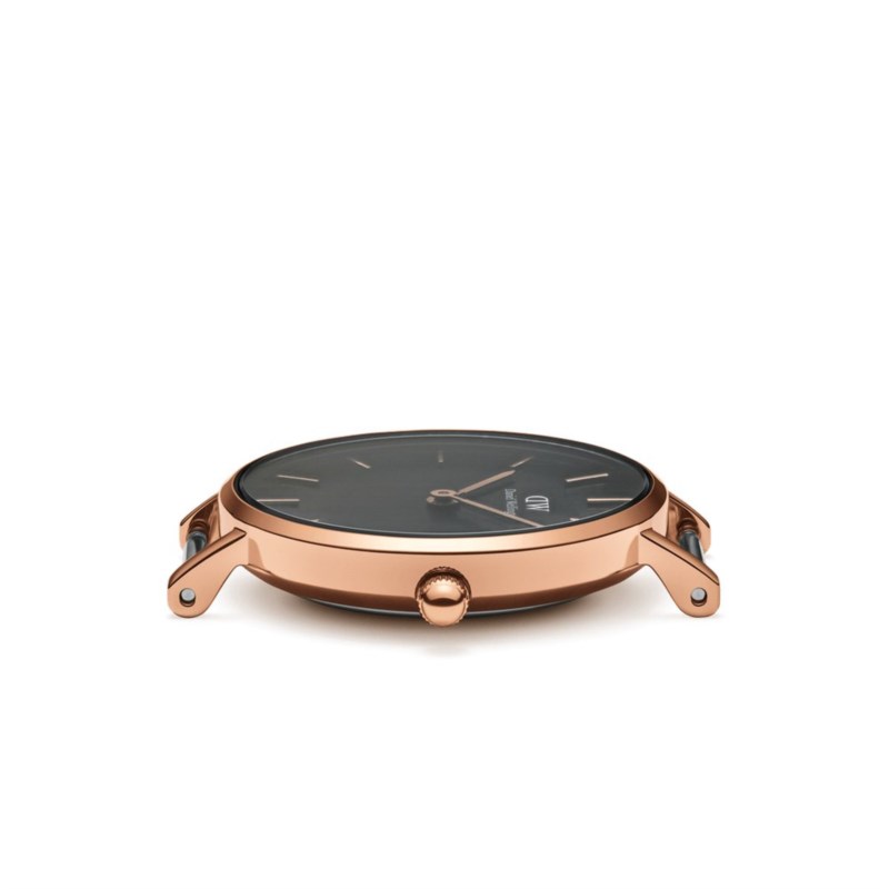 Orologio donna daniel wellington, DW00100161, collezione CLASSIC PETITE, modello MELROSE movimento al quarzo quarzo japan citizen 1l22, cassa in acciaio 32 mm spessa 6mm, colore quadrante NERO, colore bordo ROSE GOLD, cinturino IN ACCIAIO MAGLIA MILNAO impermeabile 3atm - evitare il contatto prolungato con l'acqua .