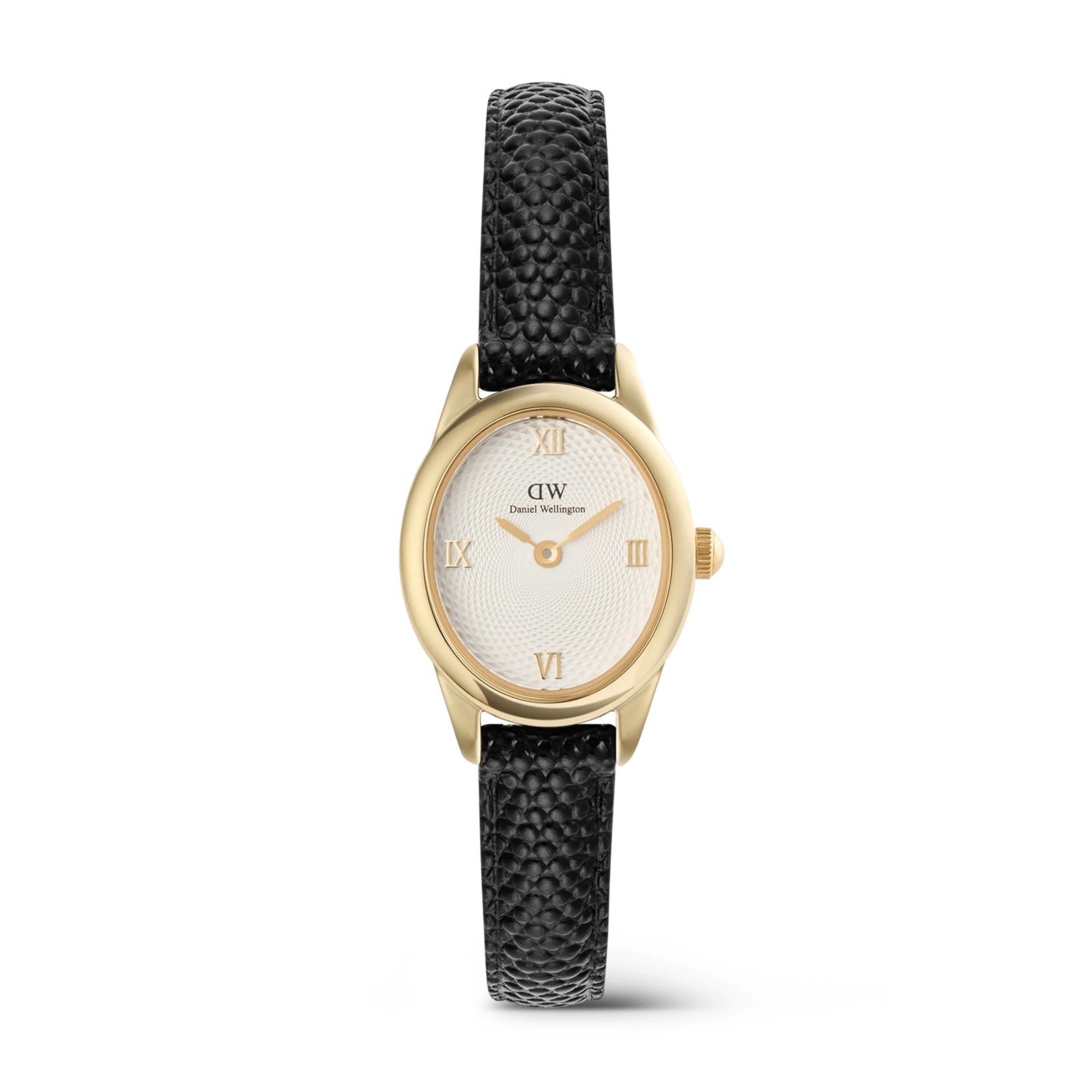 Orologio donna daniel wellington, DW00100890, collezione ophelia mini, movimento al quarzo, solo tempo, cassa in acciaio dorato 22mmx25.5mm, quadrante guillochè, cinturino in pelle nero, resistenza all'acqua 3atm
