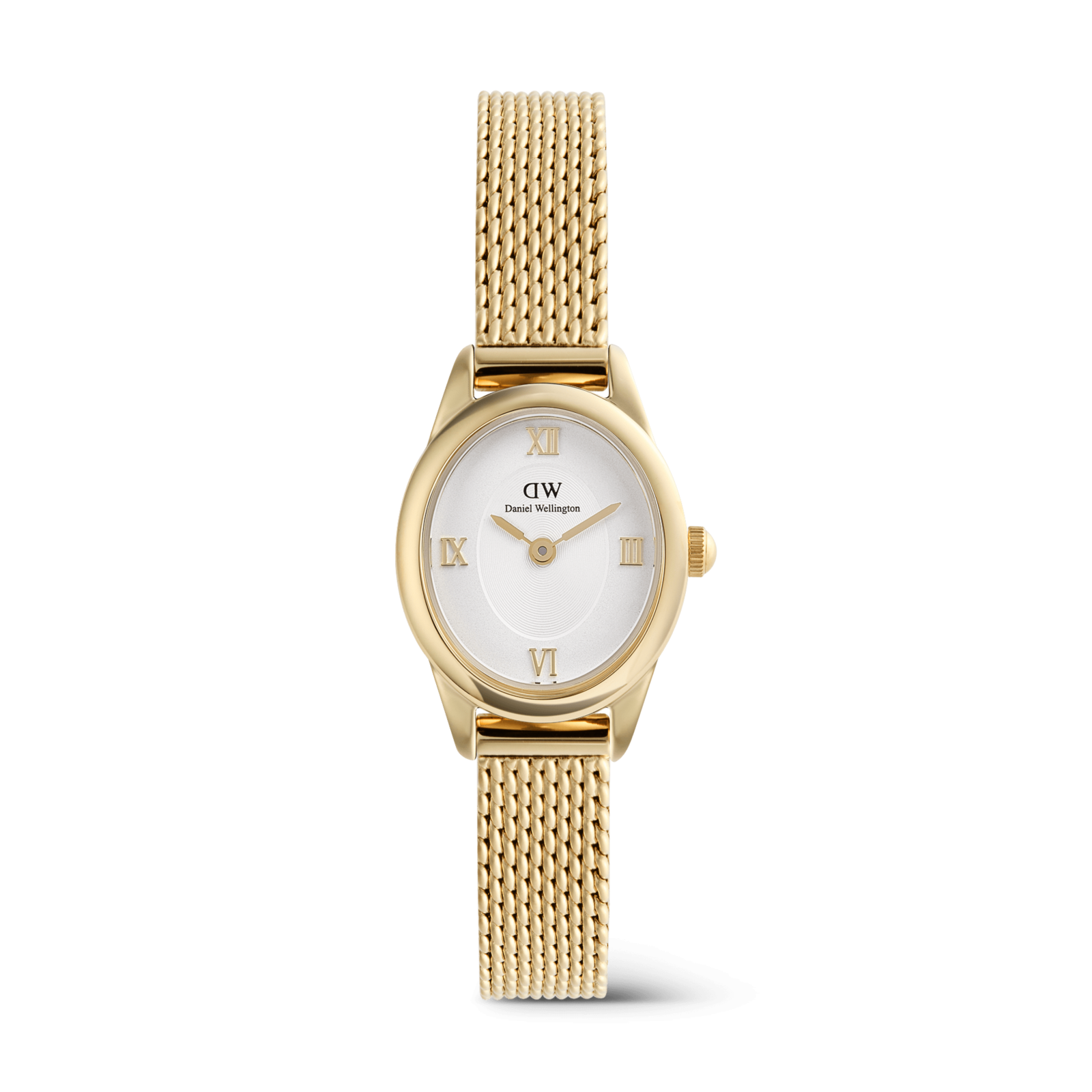 Orologio donna daniel wellington, DW00100939, collezione ophelia mini, movimento al quarzo, solo tempo, cassa in acciaio dorato 22mm, quadrante bianco con numeri romani, cinturino in acciaio dorato, Larghezza del cinturino 13mm. resistenza all'acqua 3atm.