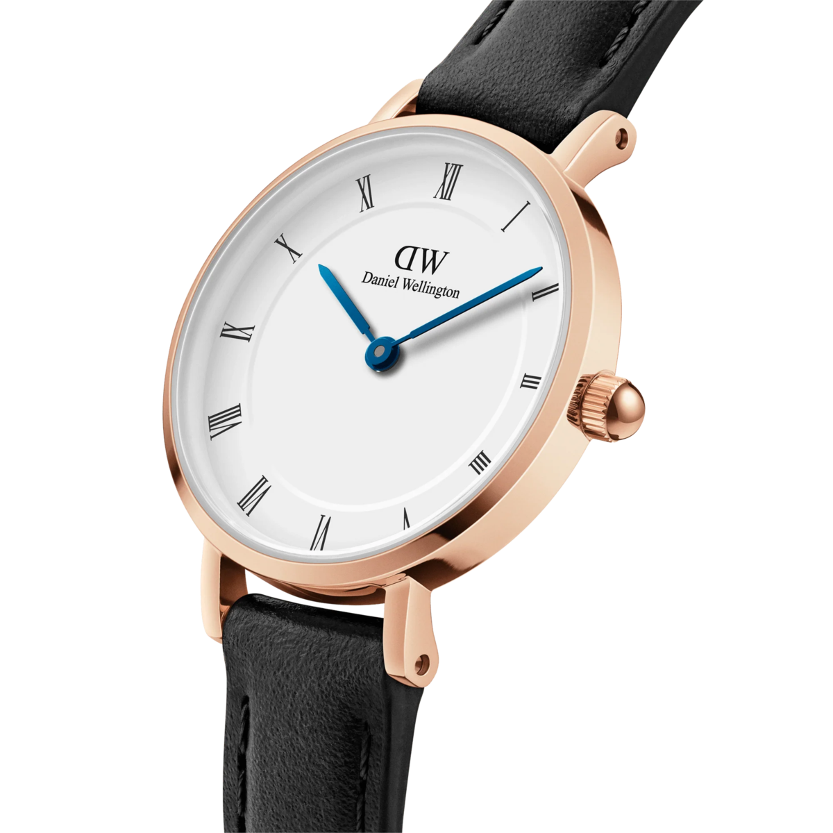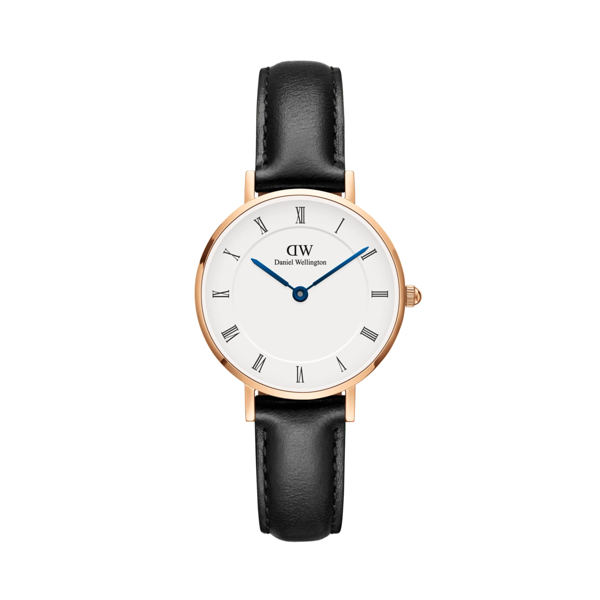 Orologio donna daniel wellington, DW00100683, collezione petite roman, movimento al quarzo, solo tempo, cassa in acciaio rosa 28mm, quadrante bianco con numeri romani, cinturino in pelle nero, resistenza all'acqua 3atm