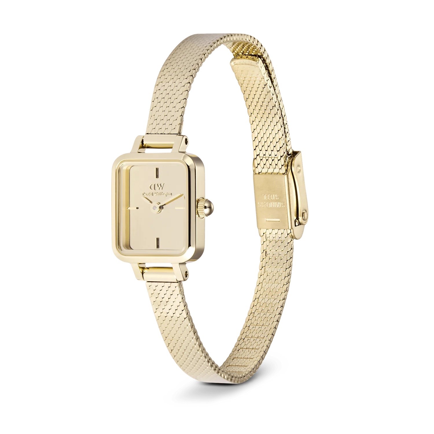 Orologio donna daniel wellington, DW00100801, collezione quadro mini, movimento al quarzo, solo tempo, cassa in acciaio dorato 15.4x18.2mm, quadrante oro, cinturino in maglia milano, resistenza all'acqua 3atm