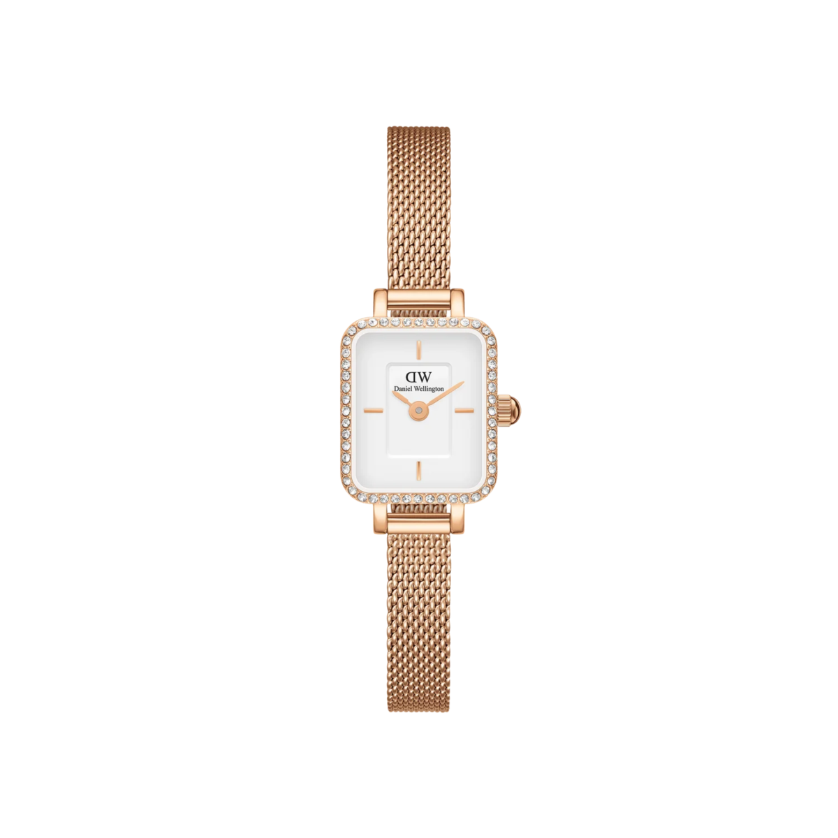 Orologio donna daniel wellington, DW00100731, collezione quadro mini lumine, movimento al quarzo, solo tempo, cassa in acciaio color oro rosa 15.4x18.2mm, quadrante bianco, cinturino in acciaio rosato, resistenza all'acqua 3atm