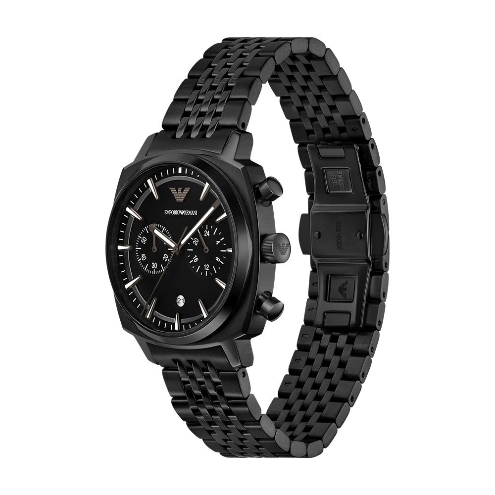 Orologio uomo emporio armani, AR11727, collezione carlo, movimento al quarzo, cronografo, cassa in acciaio nero 40mm, quadrante nero con datario, bracciale in acciaio nero, resistenza all'acqua 5atm