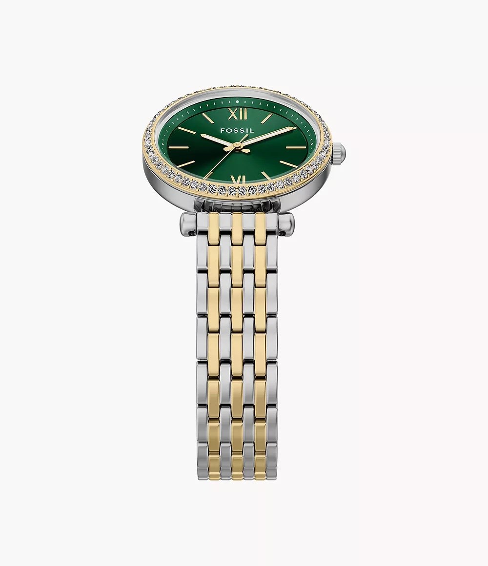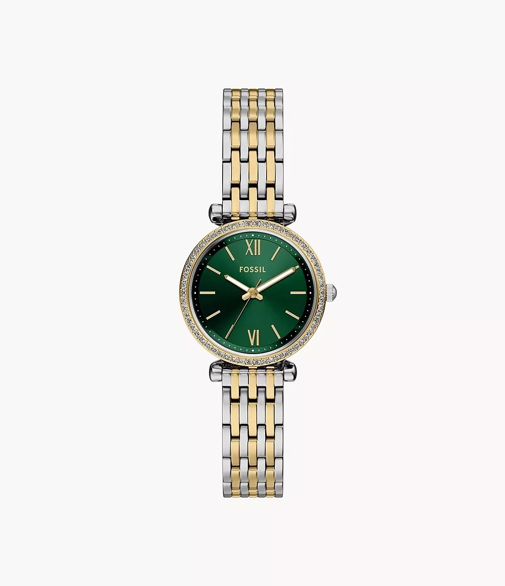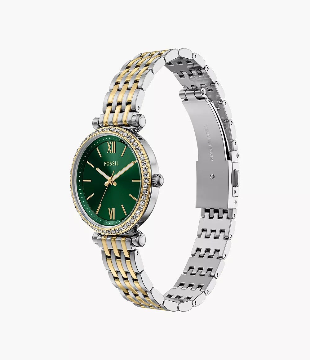 Orologio donna fossil, ES5439, collezione carlie, movimento al quarzo, solo tempo, cassa in acciaio 28mm, quadrante verde, bracciale in acciaio, resistenza all'acqua 5atm