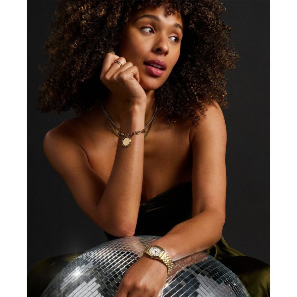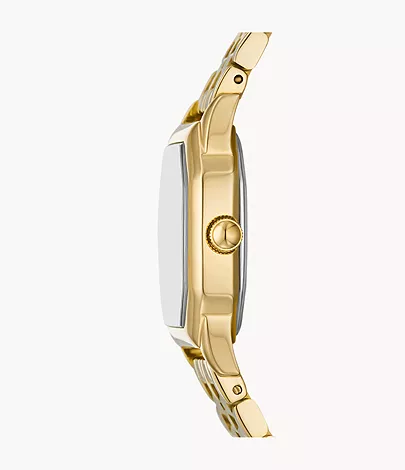 Orologio donna fossil, ES5361, collezione harlow, cassa rettangolare di 28 x 28 mm realizzata in acciaio inossidabile colore gold con finitura lucida.