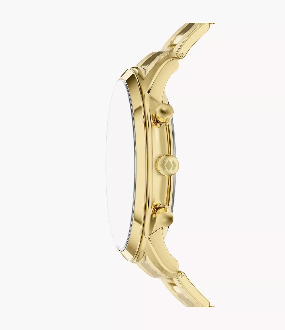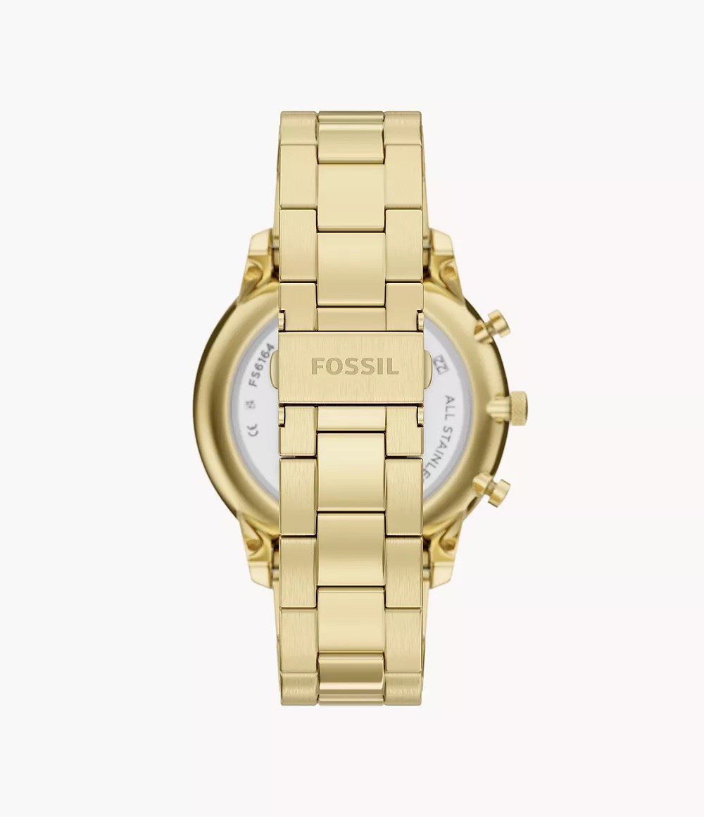 Orologio uomo fossil, FS6164, collezione neutra, movimento al quarzo, cronografo, cassa in acciaio dorato 44mm, quadrante verde con datario, bracciale in acciaio dorato, resistenza all'acqua 5atm