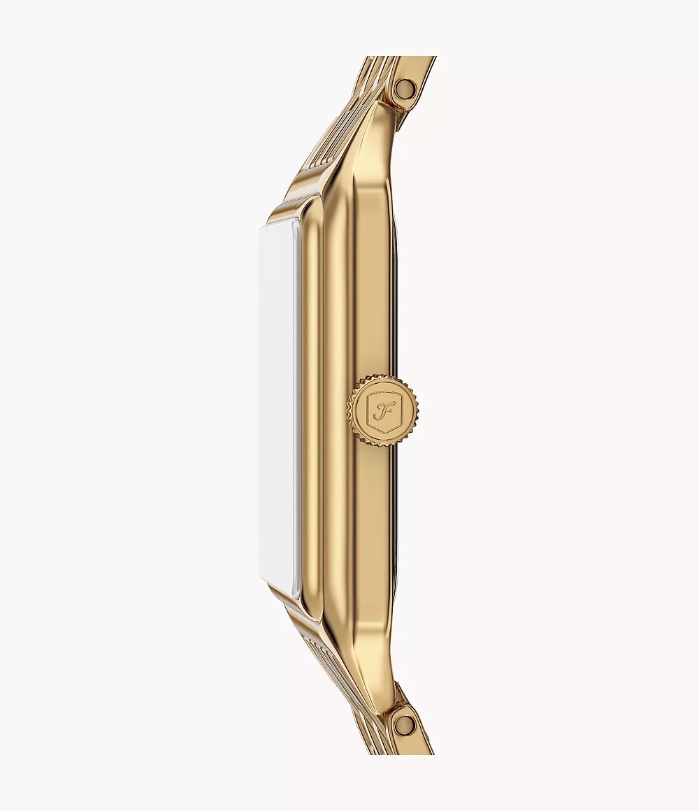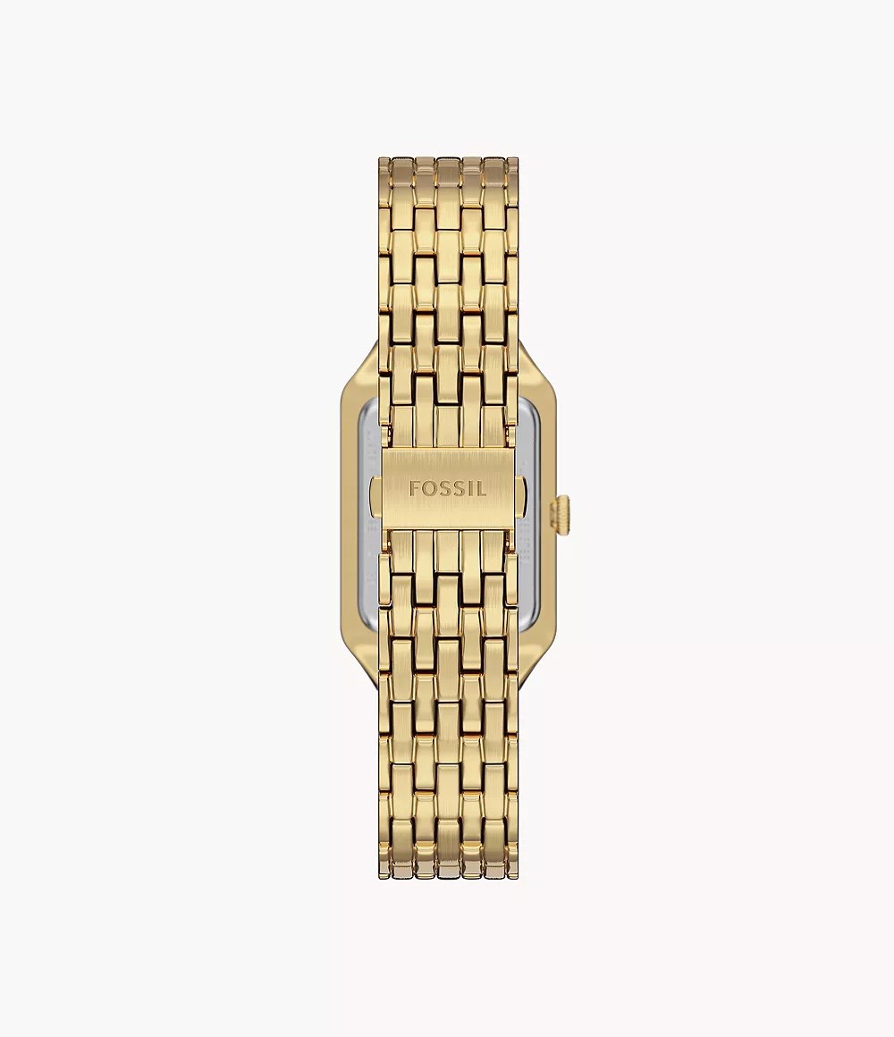 Orologio donna fossil, ES5434, collezione raquel, movimento al quarzo, solo tempo, cassa in acciaio dorato 23mm, quadrante nero con datario, bracciale in acciaio dorato, resistenza all'acqua 5atm