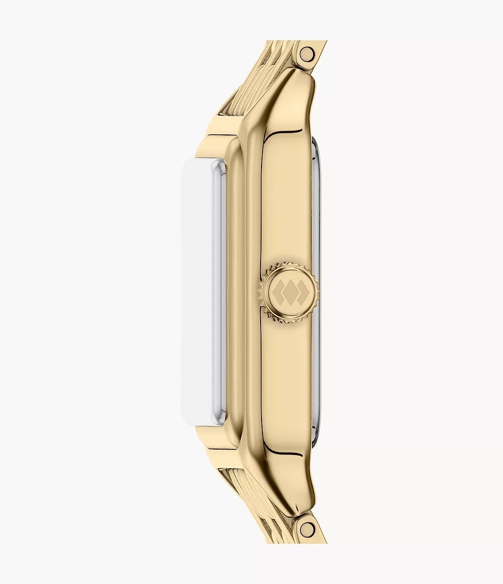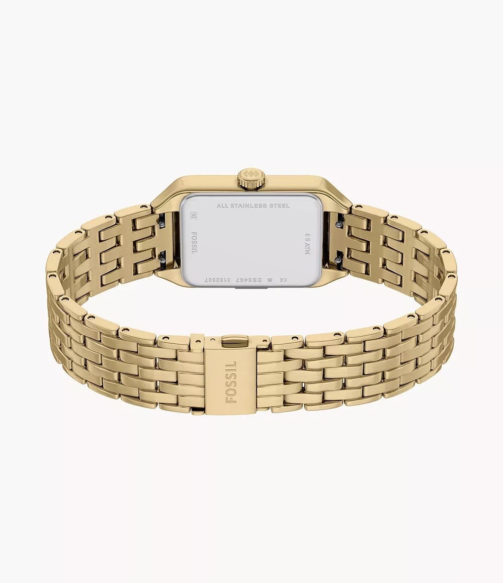 Orologio donna fossil, ES5467, collezione raquel, movimento al quarzo, solo tempo, cassa in acciaio dorato 18mm, quadrante bianco, bracciale in acciaio dorato, resistenza all'acqua 5atm