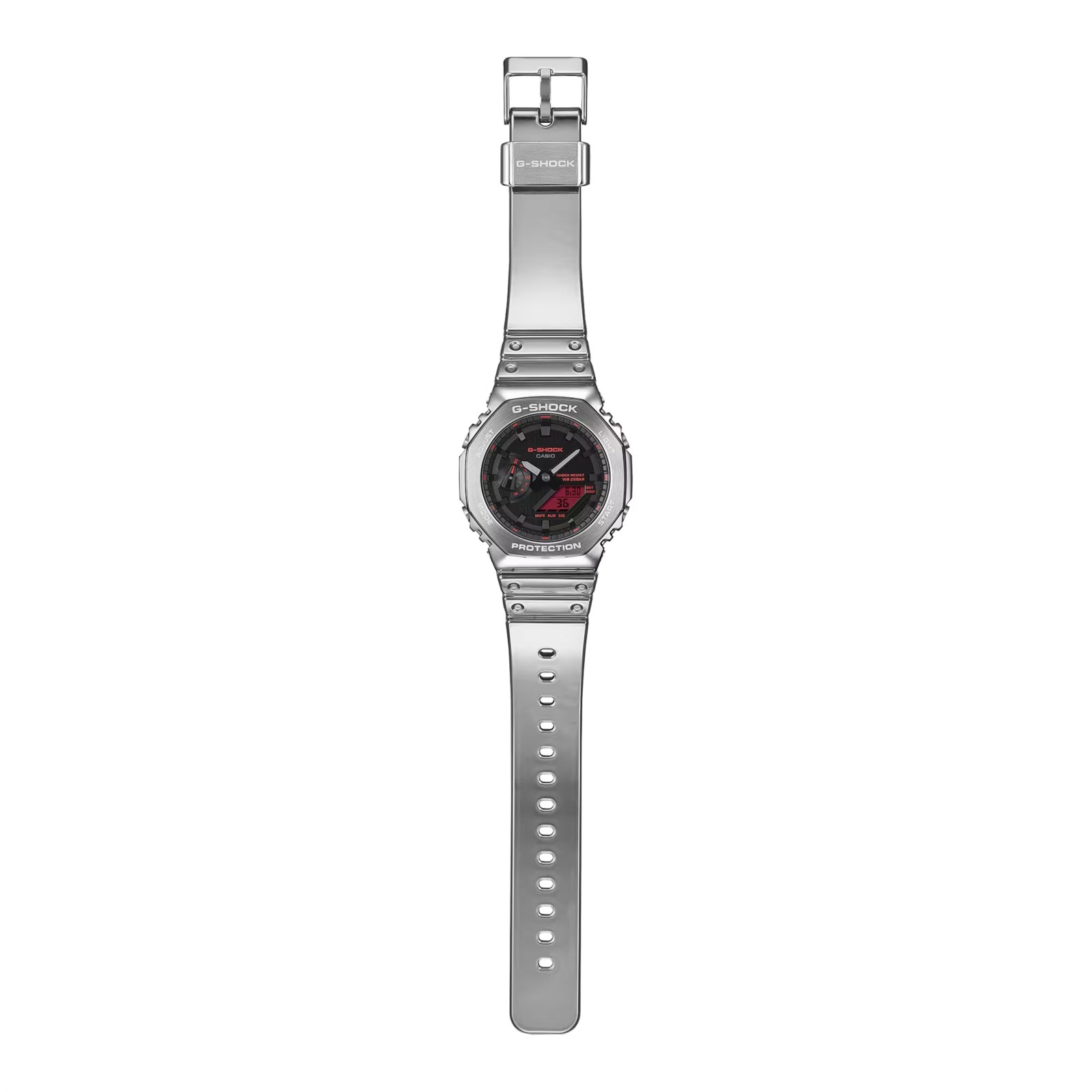 Orologio uomo g-shock, GM-2100YRA-8AER, collezione g-shock classic gm-2100, movimento al quarzo, analogico/digitale, cassa in resina 49.3 × 44.4 × 11.8 mm, quadrante nero, cinturino in resina, resistenza all'acqua 20 bar Resistente agli urti, Vetro minerale, neobrite, Ora internazionale 31 fusi orari (48 città + tempo coordinato universale), attivazione/disattivazione dell'ora legale, cronometro, timer, 5 promemoria sonori giornalieri, segnale orario, Doppia luce LED Luce LED per il quadrante (Super Illuminator, durata illuminazione selezionabile (1, 5 secondi o 3 secondi), luminescenza), Retroilluminazione a LED per il display digitale (Super Illuminator, durata illuminazione selezionabile (1, 5 secondi o 3 secondi), luminescenza), Calendario automatico completo (fino all'anno 2099), luce led bianco, Attivazione/disattivazione del segnale acustico di pressione pulsanti, Precisione: ±15 secondi al mese, Funzione di spostamento delle lancette (le lancette si spostano per non bloccare la visualizzazione del contenuto del display digitale), Indicazione dell'ora regolare: Analogico: 2 lancette (ora, minuto e secondo, con la lancetta che si muove ogni 20 secondi), 1 quadrante (giorno), Digitale: ora, minuto, secondo, pm, mese, data