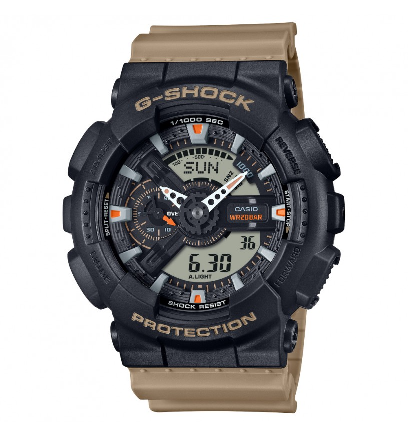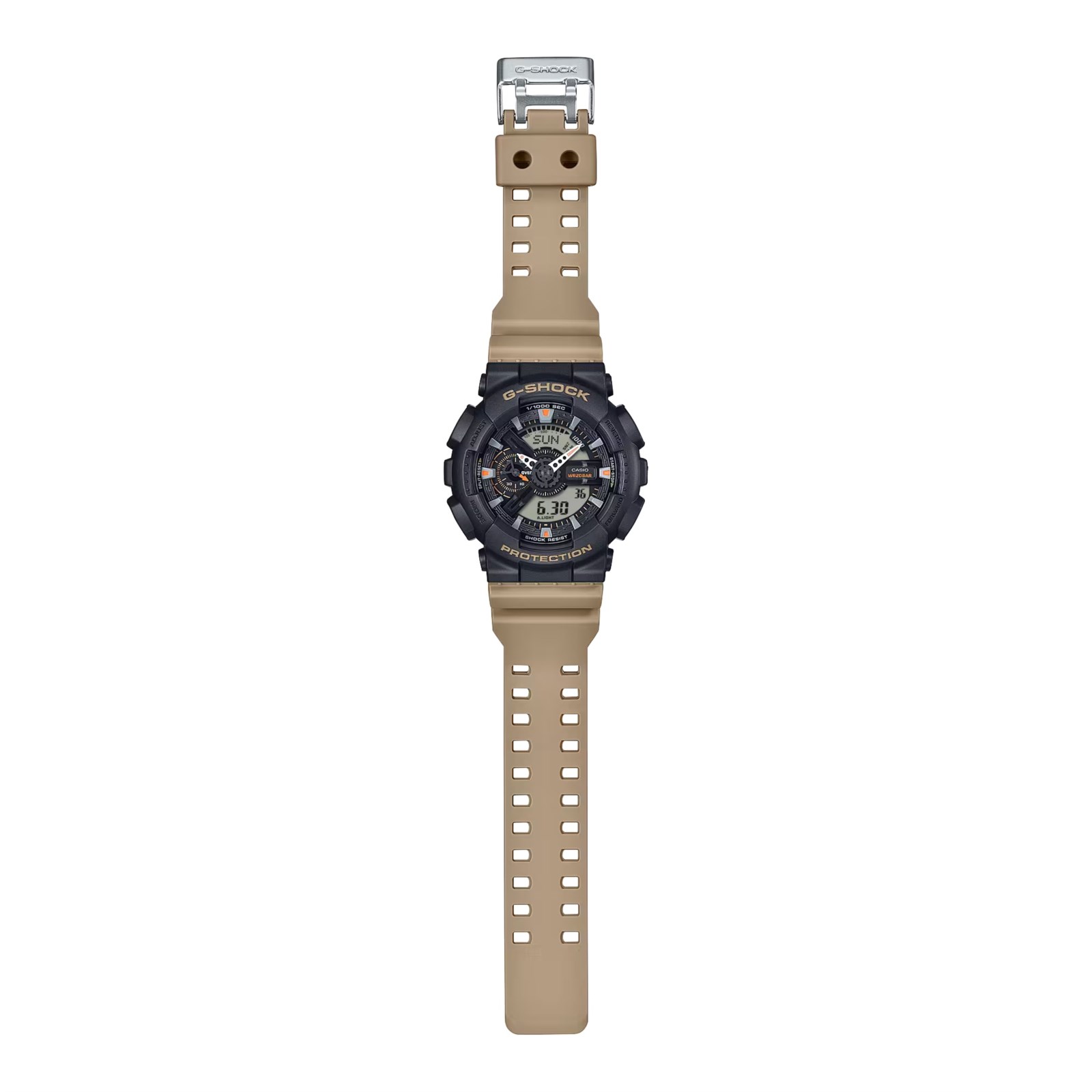 Orologio uomo G-shock, GA-110TU-1A5ER, collezione GA-110TU, Cassa antiurto realizzata in resina nera opaca dalle dimensioni di 55 mm x 51, 2 e spessore di 16, 9 mm.