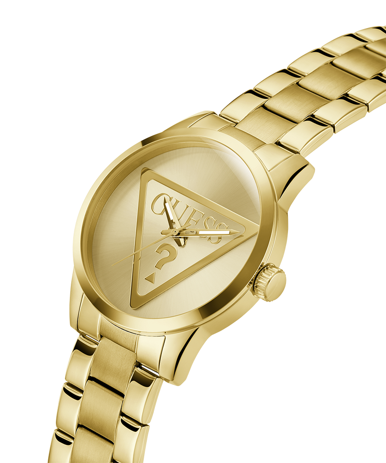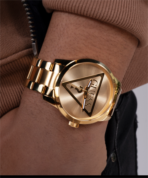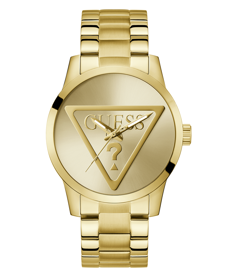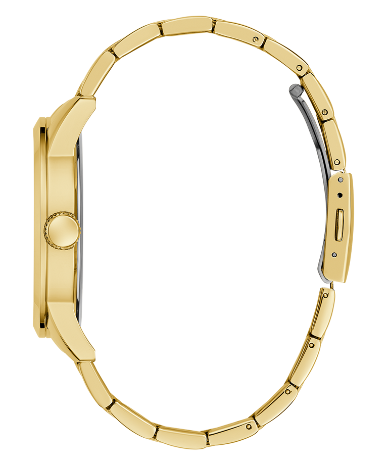 Orologio uomo guess, GW0782G1, collezione badge, movimento al quarzo, solo tempo, cassa in acciaio dorato 44mm, quadrante dorato, bracciale in acciaio dorato, resistenza all'acqua 3atm